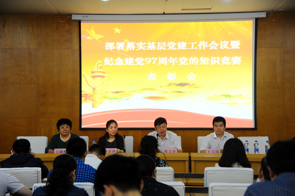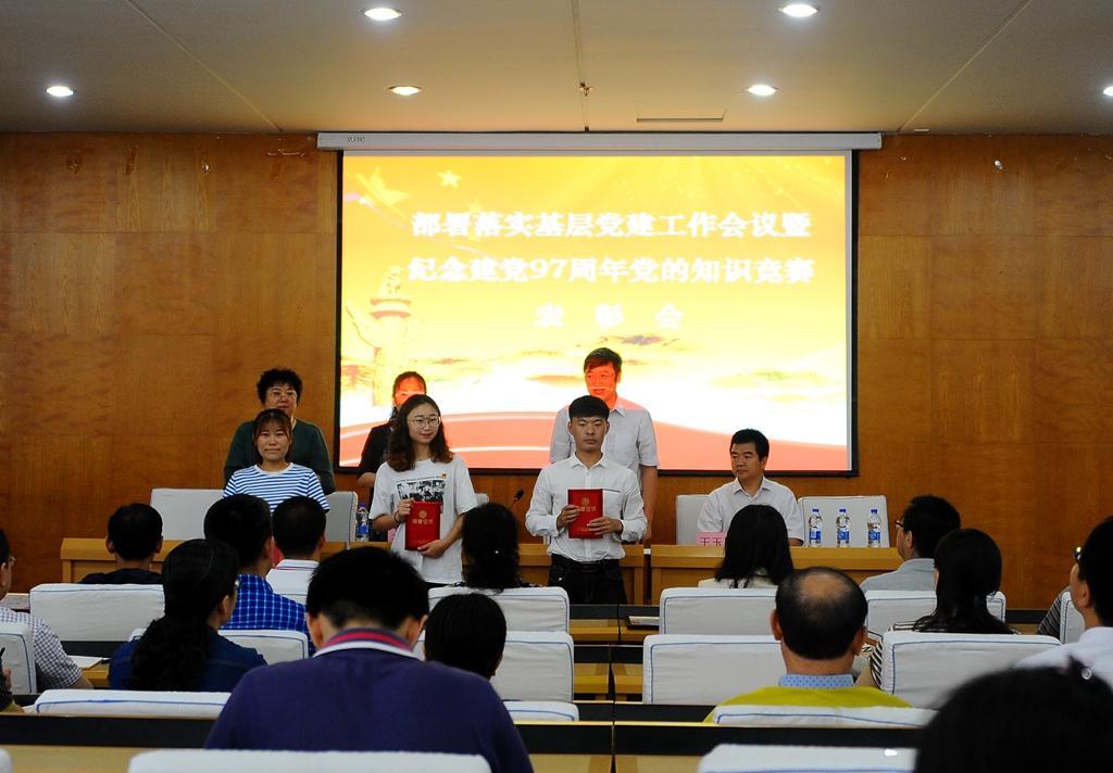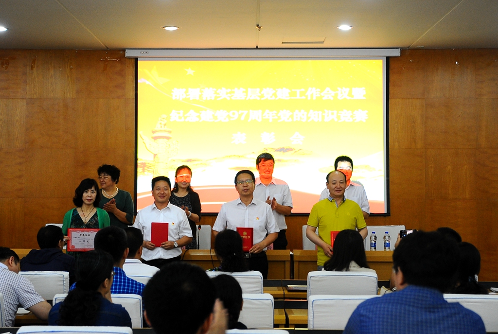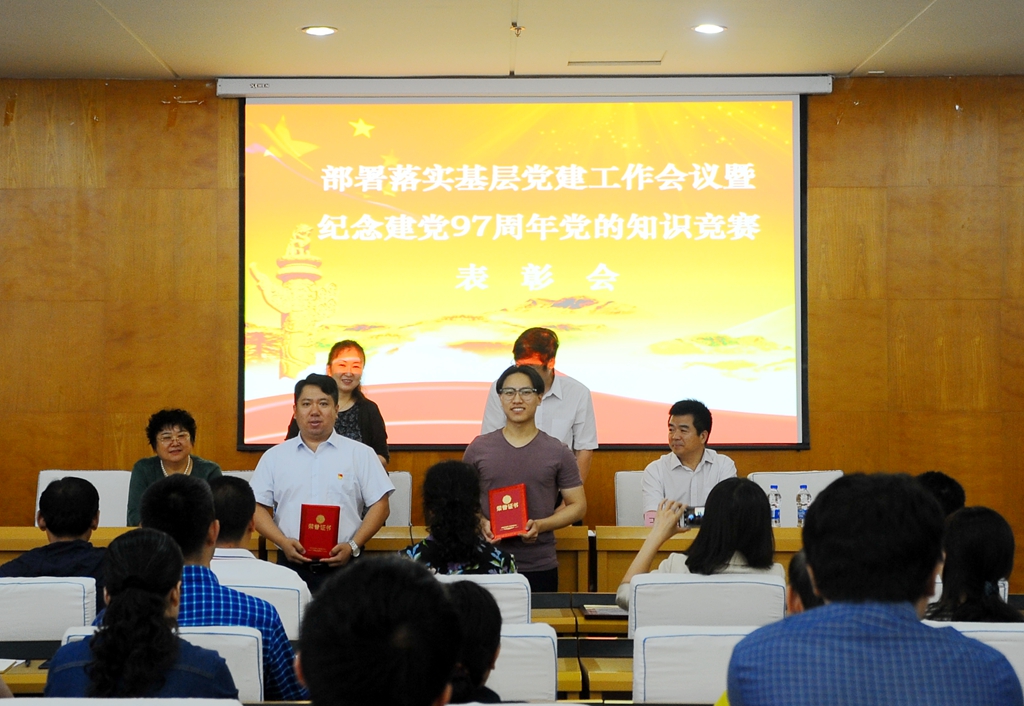 會上,學校黨委對在慶祝建黨97周年黨的知識競賽活動中取得佳績的組織和個人進行了表彰,齊宏偉宣讀了獲得“優秀組織獎”的12個黨委、直屬黨支部名單,張文治宣讀了獲獎的個人名單。