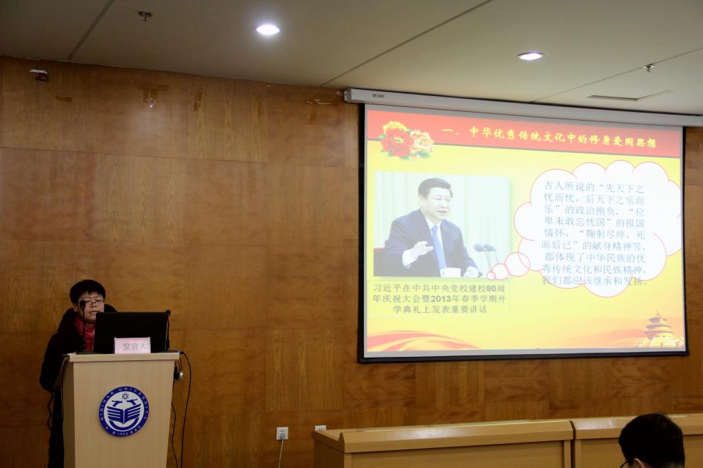 按照會議日程,校督學、碩士生導師王樹松教授,科研處副處長、碩士生導師伊全勝教授,黨委宣傳統戰部副部長、碩士生導師何強教授,馬克思主義學院思想道德修養與法律基礎教研部主任、碩士生導師王永明教授,馬克思主義學院中國近現代史綱要教研部主任、碩士生導師張春波副教授,哲學與法學學院政治學與行政學專業主任徐鳳江副教授,分別以《習近平新時代中國特色社會主義思想哲學方法論意蘊》《論精準扶貧、精準脫貧中的民主監督》《習近平“實事求是論”的實踐理性》《習近平青年社會責任觀的理論探源》《中國共產黨為國為民情懷的歷史演進與時代表征》《中國特色社會主義新時代社會主要矛盾的教學邏輯闡釋》為題,與參會領導、師生分享了他們一年來研究習近平新時代中國特色社會主義思想的最新理論成果。六位專家學者淵博厚重的學識,深入淺出的闡釋,嚴謹周密的邏輯,凝練質樸的語言,營造了非常濃郁的學術氛圍,拓展了大家對習近平新時代中國特色社會主義思想的認識,博得了現場觀眾的陣陣掌聲。