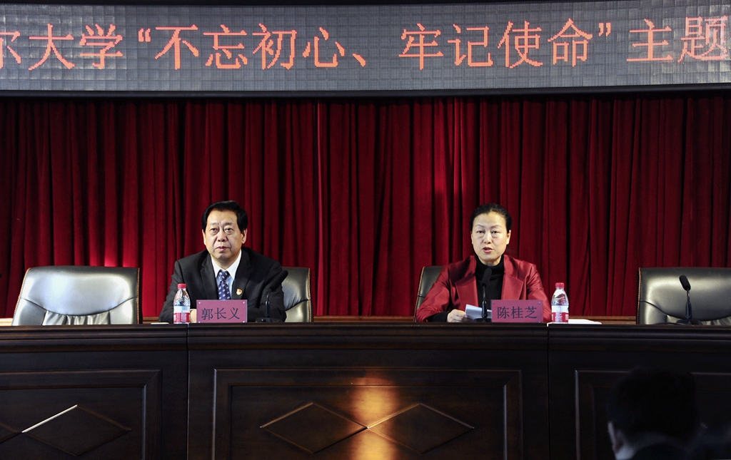 會上,陳桂芝首先代表學校黨委作總結講話。她指出,主題教育開展以來,在省委第一巡回指導組的精心指導下,學校黨委嚴格按照中央、省委的部署要求,把“不忘初心、牢記使命”作為重要政治任務,緊扣目標任務要求,聚焦主題主線,聚焦立德樹人根本任務,聚焦師生期盼,搶前抓早、不等不靠,提前部署,先學一步、先改起來,把四項重點措施貫穿始終,堅持高標準、嚴要求,學做結合、查改貫通,帶領全校廣大黨員干部,在深學細研中筑牢主題教育基礎,在對表對標中校準偏差,推動學校主題教育走深走心走實,取得了較好的預期效果。一是堅持組織領導,做到“三個到位”;二是堅持深學細研,抓好“四種學習”;三是堅持多措并舉,實施“五項舉措”;四是堅持查改貫通,注重“六個聚焦”。通過學習教育,全校各級黨組織和廣大黨員、干部提高了知信行合一能力;思想政治受到洗禮和錘煉,增強了守初心、擔使命的思想自覺和行動自覺;干事創業、擔當作為的精氣神得到提振,推動了學校改革發展穩定各項工作;強化了宗旨意識和為民情懷;涵養了風清氣正的政治生態。