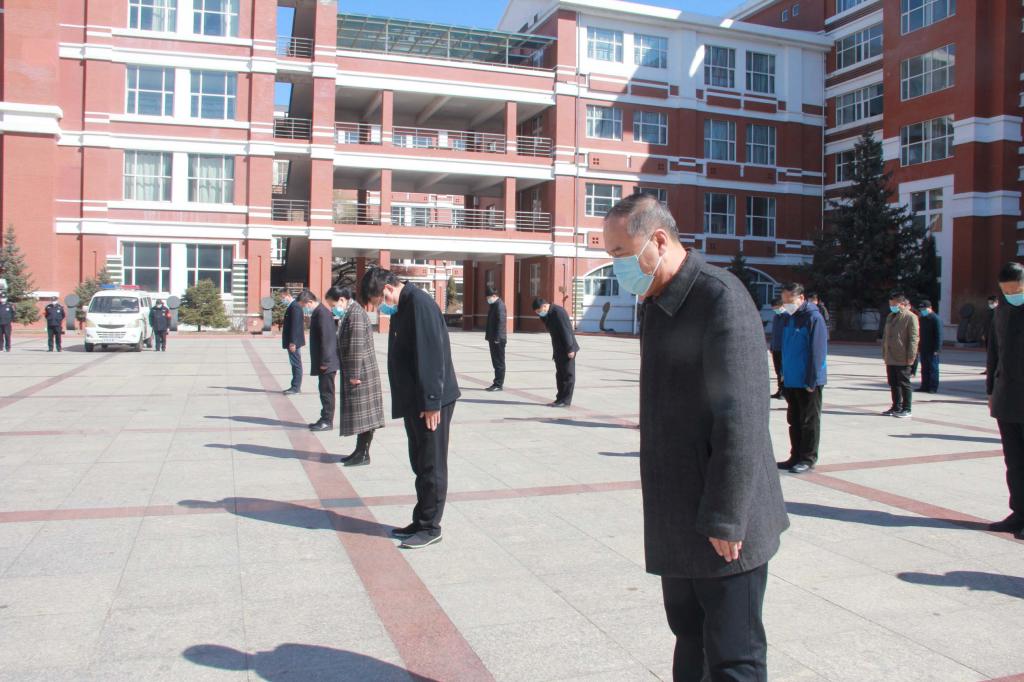 為深切表達全校師生對抗擊新冠肺炎疫情斗爭犧牲烈士和逝世同胞的深切哀悼,4月4日上午10時,我校在中區廣場舉行了哀悼活動,校黨委書記、校長陳桂芝、校黨委副書記張文治、副校長王剛、副校長李英杰、工會主席陶佰睿及工作人員等來到中區廣場,集體向新冠肺炎疫情犧牲烈士和逝世同胞默哀。