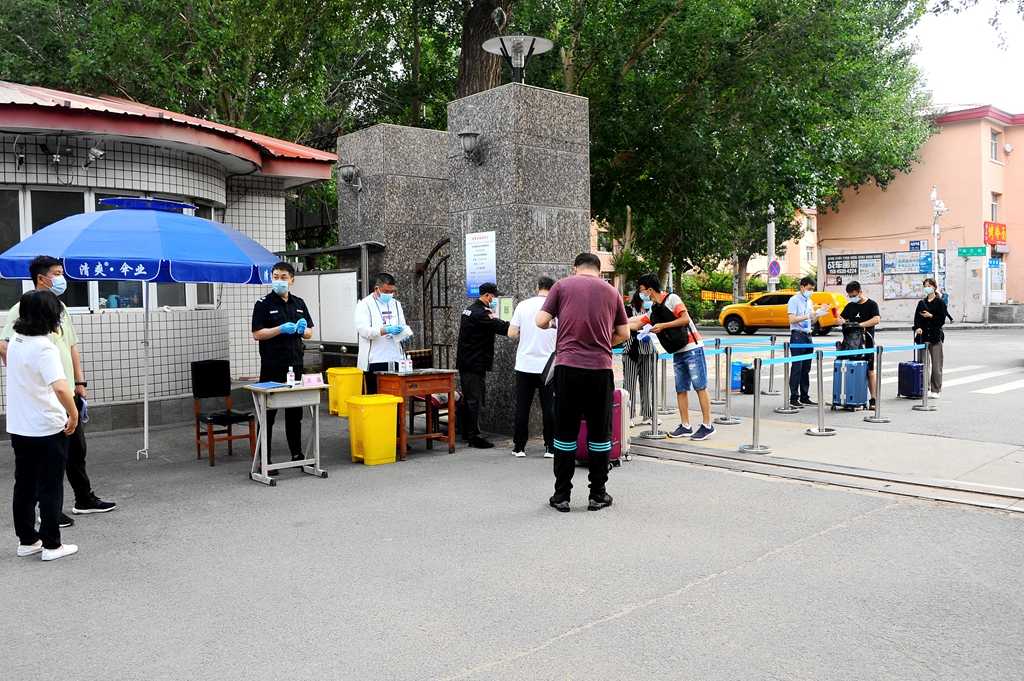同學們在學生工作部(學生處)、校團委、招生就業處、保衛處等部門工作人員的引導下有序報到,嚴格執行進校門口“龍江健康碼”“完美校園”掃碼,工作人員為學生測溫、對學生進行手部消毒和行李消殺(對學生自駕進入校園車輛消毒),各學院學生工作干部在校門內迎接返校學生,陪伴學生到隔離觀察區樓下,學生二次掃碼測溫、登記、審核通過,學生進行核酸檢測后進入房間等程序。