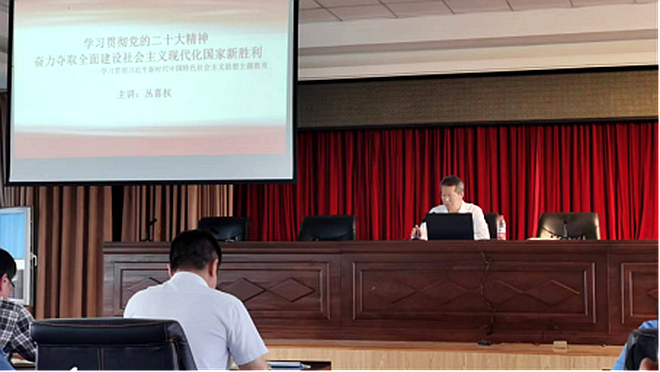 5月24日下午,校黨委副書記齊宏偉以《學思想見行動為推進學校高質量發展凝聚奮進力量》為題,結合自身學習體會與調研情況,緊密聯系分管工作實際,圍繞“深刻認識開展主題教育的重大意義”“全面準確把握主題教育的目標要求”“守牢育人陣地,建設具有強大凝聚力和引領力社會主義意識形態”“深學細照篤行,為推進學校高質量發展凝聚奮進力量”四個方面進行深入闡述。強調要深刻領悟開展主題教育的重大意義,全面準確把握主題教育的目標要求,結合實際抓好落實,確保取得預期效果;要充分認識意識形態工作的重要性,學深悟透習近平總書記關于意識形態工作重要論述;要深學細照篤行,進一步解放思想、振興發展,凝聚推進高質量發展的奮進力量。