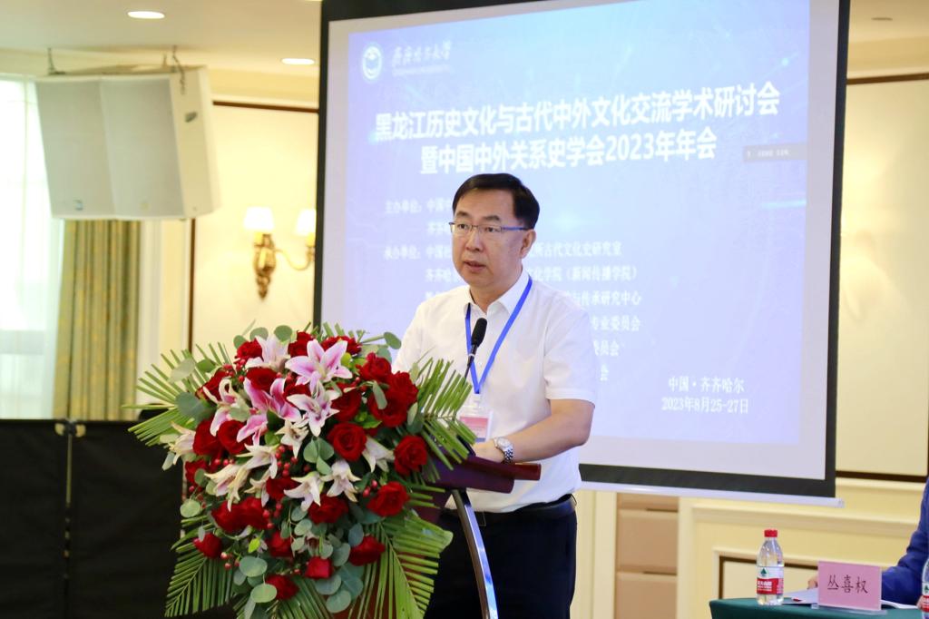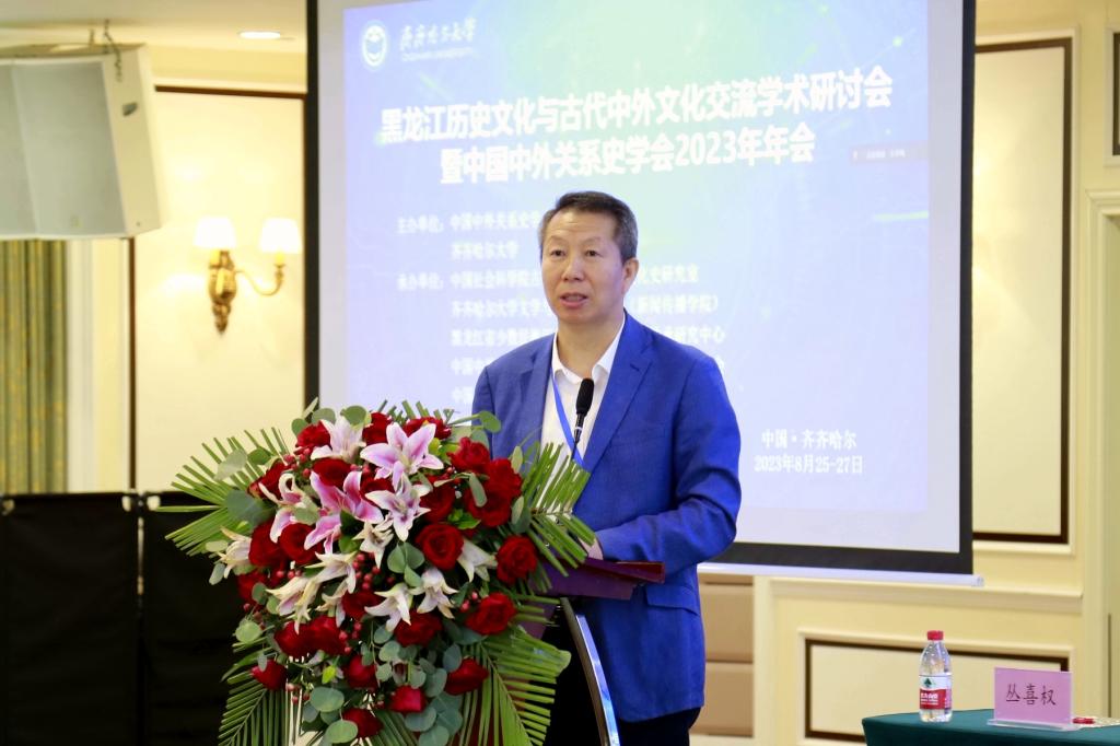 發布日期:2023-08-28 點擊量:8月26日,由中國中外關系史學會、齊齊哈爾大學主辦,中國社會科學院古代史研究所古代文化史研究室、齊齊哈爾大學文學與歷史文化學院(新聞傳播學院)、黑龍江省少數民族歷史文化遺產保護與傳承研究中心、中國中外關系史學會中外文化交流史研究專業委員會、中國中外關系史學會中日關系史研究專業委員會、中國中外關系史學會絲綢之路研究專業委員會承辦,昂昂溪區遺址博物館協辦的黑龍江歷史文化與古代中外文化交流學術研討會暨中國中外關系史學會2023年年會在齊齊哈爾和美酒店舉行。