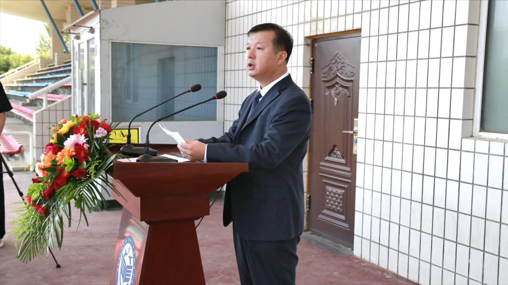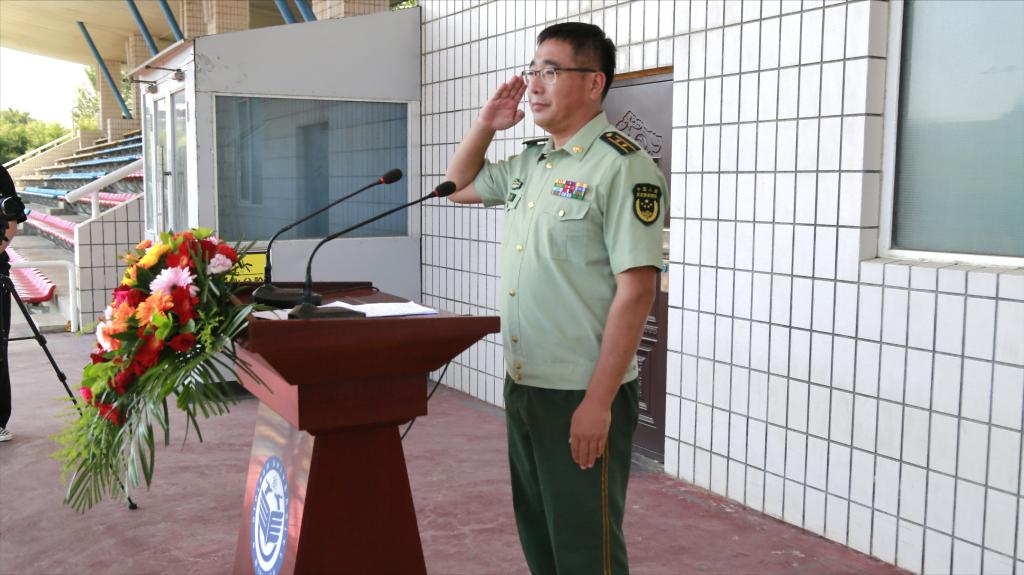 張文治作動員講話。他代表學校向承擔本次軍訓任務的武警齊齊哈爾支隊全體官兵致以崇高的敬意和熱烈歡迎,向擔任軍訓任務的自訓教官表示衷心的感謝,并向參加軍訓的2023級新同學表示親切的慰問。他指出,黨和國家十分重視學生軍訓工作,做好學生軍訓工作不僅是學校全面貫徹黨的教育方針,推進素質教育、培養(yǎng)四有新人的客觀要求,也是為國防和軍隊建設培養(yǎng)造就大批高素質后備兵員的重要舉措,軍訓是每個大學生的開學第一課,意義重大、影響深遠、作用突出。他就做好今年軍訓工作提出三點要求:一是提高思想認識,充分認清軍訓的目的意義;二是認真努力學習,深刻理解軍訓的目標任務;三是堅持刻苦訓練,著力錘煉堅強意志品格。
