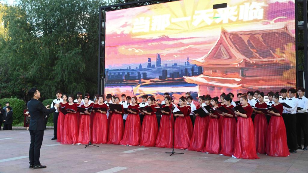 最后,全場師生共同合唱《我和我的祖國》,演出落下了帷幕。