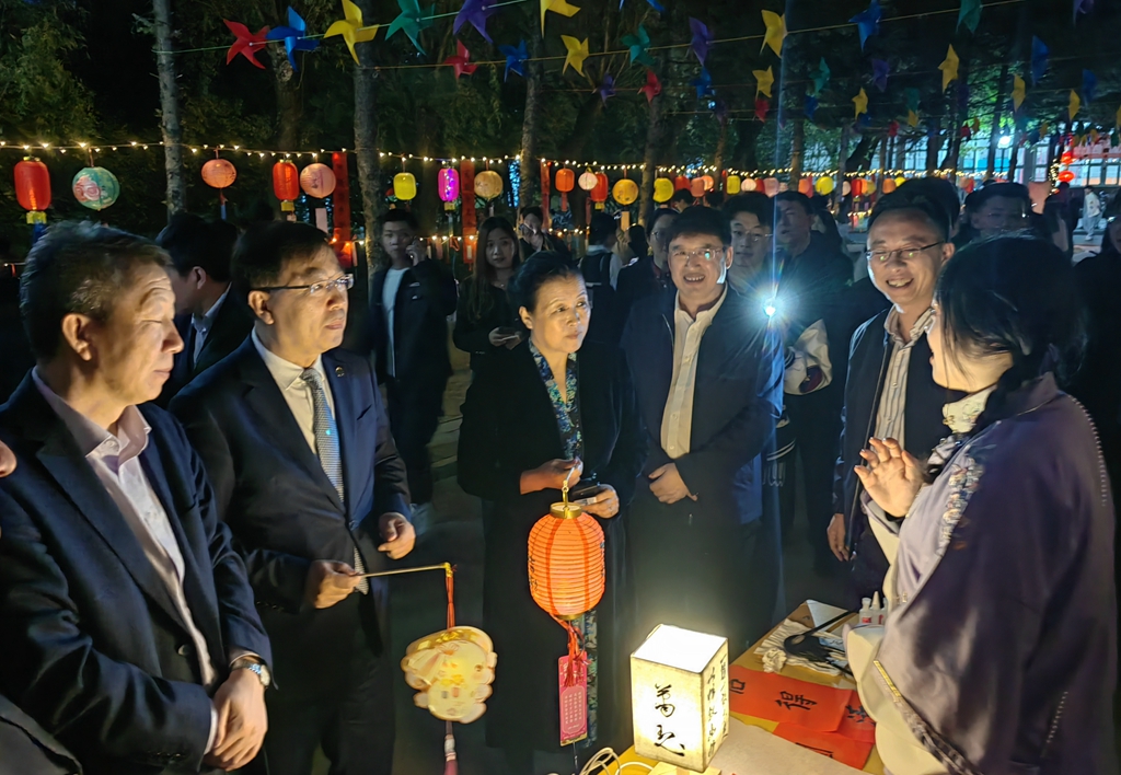 以文化人,以德潤心。本次活動以“花燈映月 情暖齊大”為主題,設置了妙手生彩華(制作花燈)、紈扇比明月(制作團扇)、慧眼識燈語(猜燈謎)、相思寄鴻雁(寫祝福卡)等環節。同學們或聯手制作花燈、團扇,或饒有興趣地討論燈謎謎底,或在祝福卡片上寫下了對家鄉和親人的思念以及對未來的美好期許。通過這種“接地氣”“沉浸式”“自助式”的方式,同學們切身體會到中秋傳統文化,相互交流、分享經驗,并在弘揚傳統文化的同時,倍感親情、友情與團圓之美。活動期間,校領導陳桂芝、郝文斌、張文治、叢喜權、張樹軍及相關職能部門負責人也參與到游園活動中,與同學們共慶中秋佳節、共迎國慶華誕、共敘家國情懷!