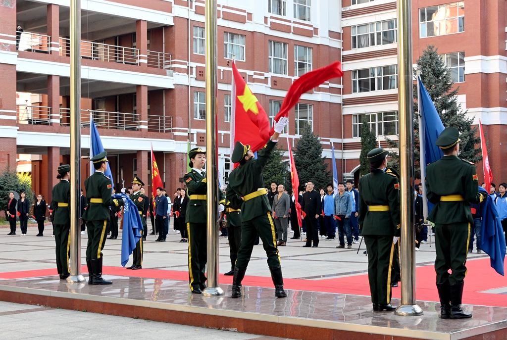 發布日期:2023-10-01 點擊量:為慶祝中華人民共和國成立74周年,大力弘揚愛國主義精神,激發全校師生的愛國熱情,進一步加強愛國主義教育,增強學生的國家觀念、民族自信心、自豪感和愛校榮校意識,10月1日上午7點30分,我校在中區廣場舉行“慶十一 跟黨走 建新功”主題升旗儀式。學校黨委書記陳桂芝、黨委副書記張文治出席活動,全校團員青年代表和相關部門單位干部教師代表參加了此次活動。活動由張文治主持。