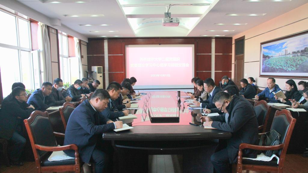 發(fā)布日期:2023-10-12 點(diǎn)擊量:為深入學(xué)習(xí)貫徹習(xí)近平新時(shí)代中國特色社會(huì)主義思想,深刻領(lǐng)會(huì)中央宣傳部、中央組織部聯(lián)合印發(fā)的《關(guān)于進(jìn)一步提高黨委(黨組)理論學(xué)習(xí)中心組學(xué)習(xí)質(zhì)量的意見》精神和全國宣傳思想文化工作會(huì)議精神,總結(jié)交流經(jīng)驗(yàn),分析現(xiàn)實(shí)問題,研究部署下一步工作,按照學(xué)校黨委相關(guān)工作安排,10月12日上午,學(xué)校在辦公樓504會(huì)議室召開二級(jí)黨組織黨委理論學(xué)習(xí)中心組學(xué)習(xí)經(jīng)驗(yàn)交流會(huì)。會(huì)議由黨委常委、宣傳部部長王曉梅主持,校黨委副書記齊宏偉出席會(huì)議并講話。各二級(jí)黨組織書記和黨委宣傳部相關(guān)同志參加交流會(huì)。