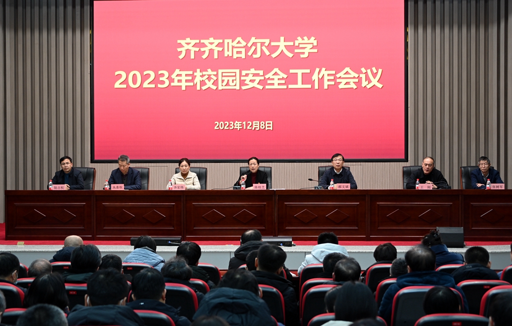 12月8日下午,學校在日新大廈四樓學術報告廳召開2023年校園安全工作會議。學校領導班子成員出席會議,各二級單位黨政負責人、各學院黨委副書記、保衛處全體工作人員參加會議。會議由校黨委書記陳桂芝主持。