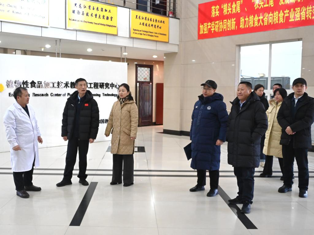 調(diào)研組一行先后深入食品與生物工程學(xué)院、生命科學(xué)與農(nóng)林學(xué)院調(diào)研。食品與生物工程學(xué)院院長(zhǎng)任健介紹了我校作為黑龍江省玉米深加工產(chǎn)業(yè)技術(shù)創(chuàng)新戰(zhàn)略聯(lián)盟理事長(zhǎng)單位在玉米精深加工產(chǎn)業(yè)技術(shù)創(chuàng)新方面的突出特色和重要貢獻(xiàn),校企合作、產(chǎn)教融合所取得的成果。