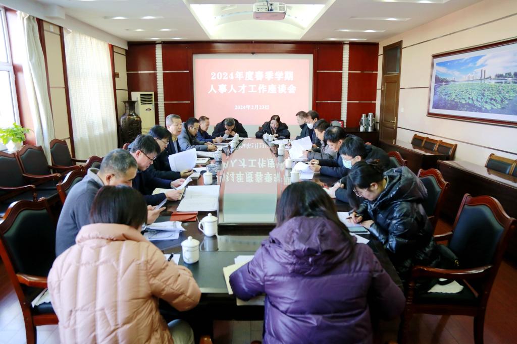 近日,學校在辦公樓504會議室先后召開教育教學、有組織科研、學科建設、人事人才工作務虛會,全面征集廣大干部職工對學校建設、改革與發展的意見和建議,積極謀劃2024年學校重點工作。校長、黨委副書記郝文斌出席系列會議并講話,黨委常委、副校長叢喜權,黨委常委、副校長張樹軍和相關部門負責人、學院領導代表及學科專業帶頭人參加會議。