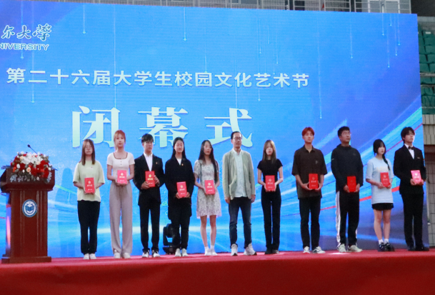 閉幕式上,學生工作部(學生處)部(處)長杜海權、校團委書記羅霄,研究生部黨委書記、主任荊濤分別宣讀了第二十六屆大學生校園文化藝術節校級活動獲獎名單、優秀組織獎和突出貢獻獎名單和學校亞洲冬季運動會校園冬夢大使名單。