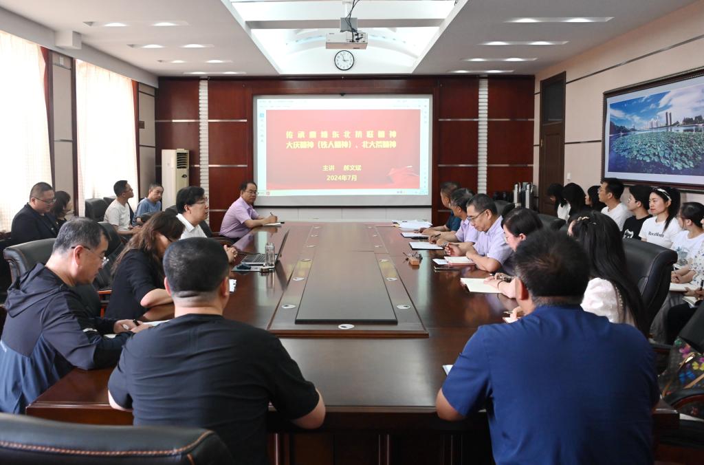 郝文斌以《傳承賡續東北抗聯精神、大慶精神(鐵人精神)、北大荒精神》為題,從感受艱難歲月、把握豐富內涵,汲取豐厚滋養、獲得智慧啟迪,賡續精神血脈、激發奮進力量等三個方面進行了闡述。