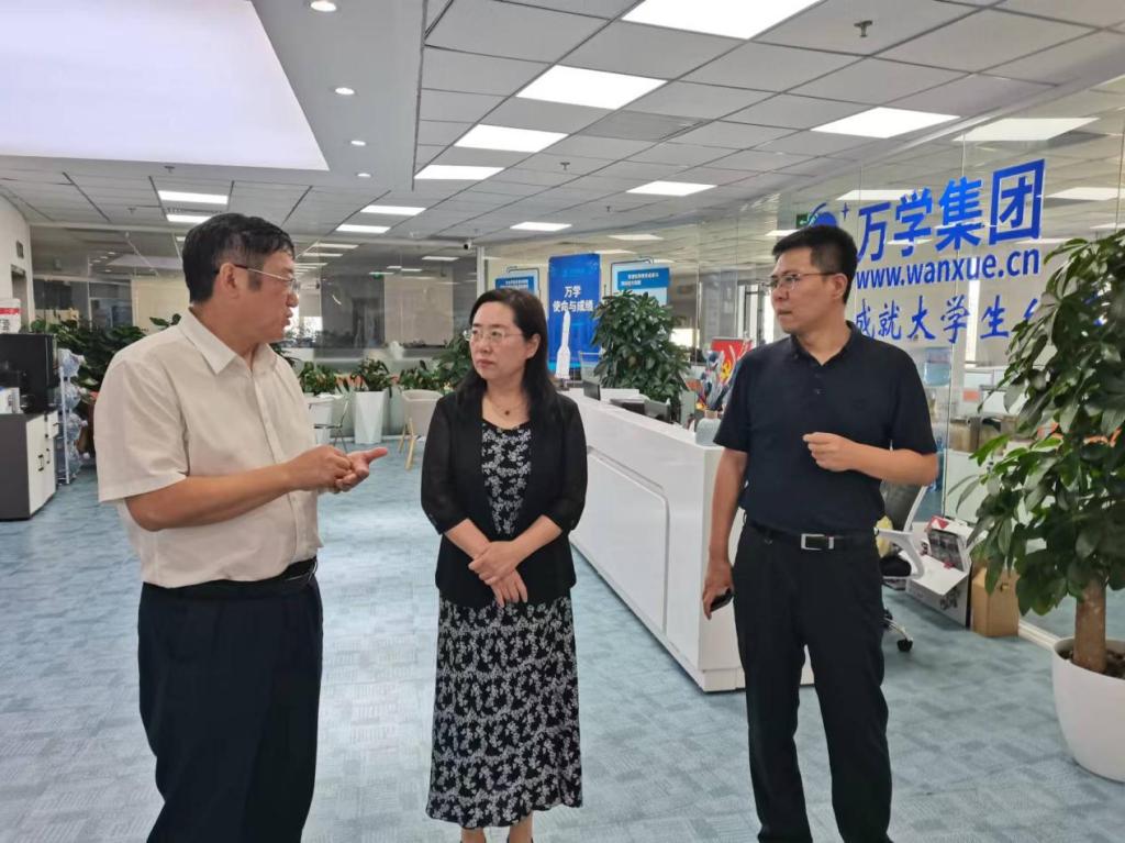在北京萬學教育科技有限公司,丁宏一行就職業發展精細規劃、核心職業能力培訓、就業培訓與深度服務、創新創業教育、先進產業和專精特新人才培養、高校應用型轉型發展等方面與副董事長張強進行了深入交流。