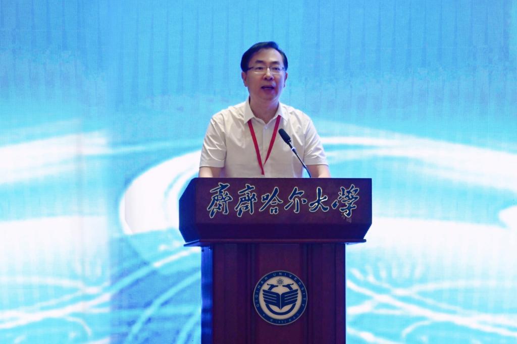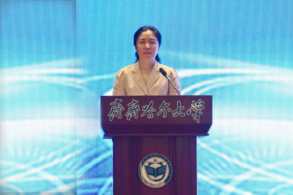 校長、黨委副書記郝文斌教授致辭,他對與會嘉賓的到來表示熱烈歡迎和衷心感謝,并介紹了學(xué)校的發(fā)展歷程和建設(shè)情況,誠邀來自全國各大學(xué)、科研院所的專家學(xué)者與齊齊哈爾大學(xué)深入開展交流與合作。