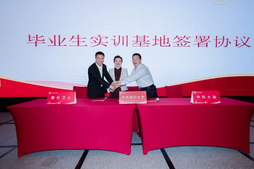 教務處處長劉省非代表學校與中關村科學城城市大腦股份有限公司、北京康樂衛(wèi)士生物技術股份有限公司分別簽署畢業(yè)生實訓基地協(xié)議。??