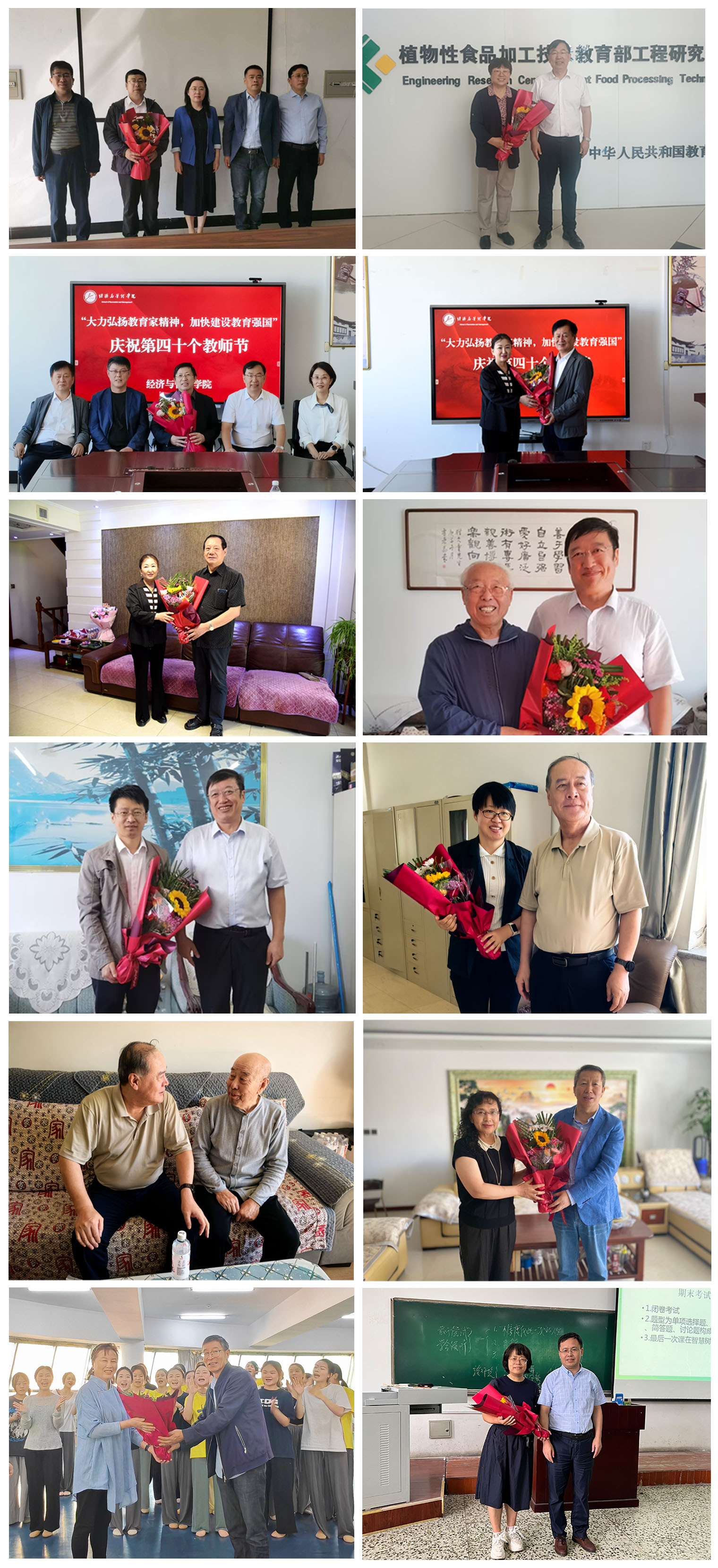 9月9日至10日,在第40個教師節來臨之際,校領導丁宏、郝文斌、齊宏偉、張文治、王剛、叢喜權、張樹軍、陸占權在相關部門和學院負責人的陪同下,分別看望慰問了在齊的部分老領導、老教師、高層次人才和優秀教師代表,向他們致以誠摯問候和節日祝福。