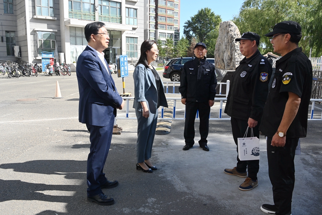 校領導一行先后來到了學校總值班室、辦公樓門衛室、中區大門,校體育館南門,西二區學生食堂、浴池、學生宿舍28號樓,東區東南門、德潤大廈等地,每到一處都詳細了解中秋節假日期間相關崗位的工作和值班情況,對大家的辛勤付出表示感謝,囑咐大家要關注天氣變化,注意保重身體,并代表學校為堅守崗位的職工代表們送去了慰問品,希望大家能一如既往地做好節日期間的保障工作,確保廣大師生度過一個安定祥和的假期。