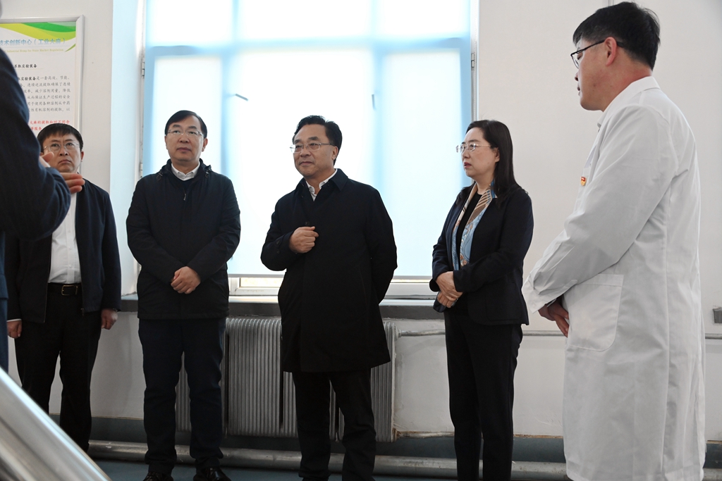 沈宏宇一行實地考察了齊齊哈爾大學科技園、國家市場監管技術創新中心(工業大麻)、省農用生物制劑產業化協同創新中心等科研創新平臺和工業大麻提取與加工、農用生物菌劑、全谷物營養玉米粉、益生菌等中試生產線,認真聽取了相關負責人關于科研創新平臺、中試熟化平臺建設運行及科研成果轉化等方面情況的介紹,深入了解我校在生態圈建設、科技創新、成果轉化及社會服務等方面的情況,對我校近些年在推進生態圈建設和科技成果轉化等方面的優異成績表示肯定,并就我校如何依托科研平臺和中試熟化平臺進一步深化環齊齊哈爾大學創新創業生態圈建設提出指導意見。