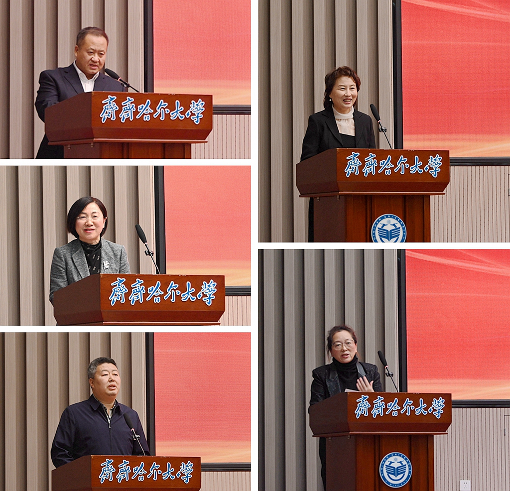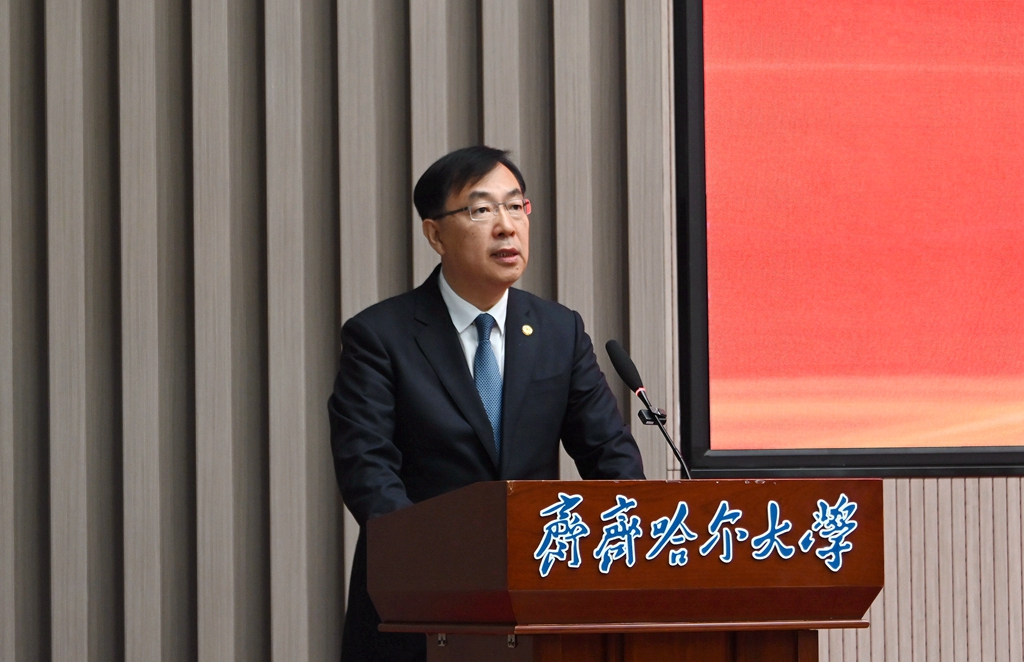 郝文斌在講話中代表學校,以“踐行新質生產力理念,彰顯科研優勢特色,加快建設有特色高水平應用型綜合性大學”為題,從近五年科研工作的主要成效、目前科研工作存在的問題、未來三年科研工作部署三個方面,作了科研工作報告。郝文斌指出,五年來,學校科研工作堅持問題導向、需求導向、產業導向,聚焦國家戰略需求和區域經濟社會發展,立足服務創新龍江建設和“4567”現代產業體系,加強基礎研究、強化應用研究,以提升學校科學研究水平和服務區域經濟社會發展能力為目標,在自主創新能力、科技成果轉化、高層級獎項等方面取得突破性進展和重要標志性成果。未來三年學校科研工作的總體思路:深入學習貫徹習近平總書記關于科技創新和哲學社會科學重要論述,認真貫徹全國科技大會、全國教育大會精神,按照全省科技大會、科學技術獎勵大會工作部署:一是要明確科研主攻方向,深化科技創新與產業創新;二是要謀劃“大”項目,找準科研突破口;三是要建“真”團隊,解決“真”問題;四是深刻洞察并精準把握黨和國家政策指向,緊扣國家戰略和區域發展需求,確保“十五五”科研規劃的前瞻性與系統性,為高質量發展注入源源不斷的創新動力。他從強化有組織科研、加強應用研究、建強科研平臺等七個方面,進行了工作部署,希望廣大科研工作者深入踐行新質生產力理念,為加快實現國家高水平科技自立自強貢獻齊大智慧和力量!