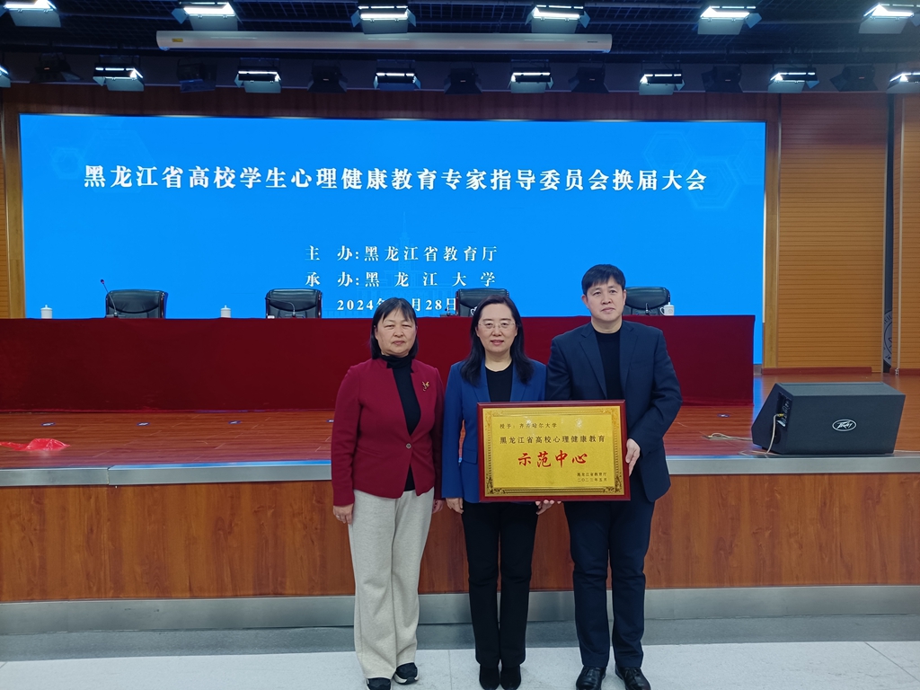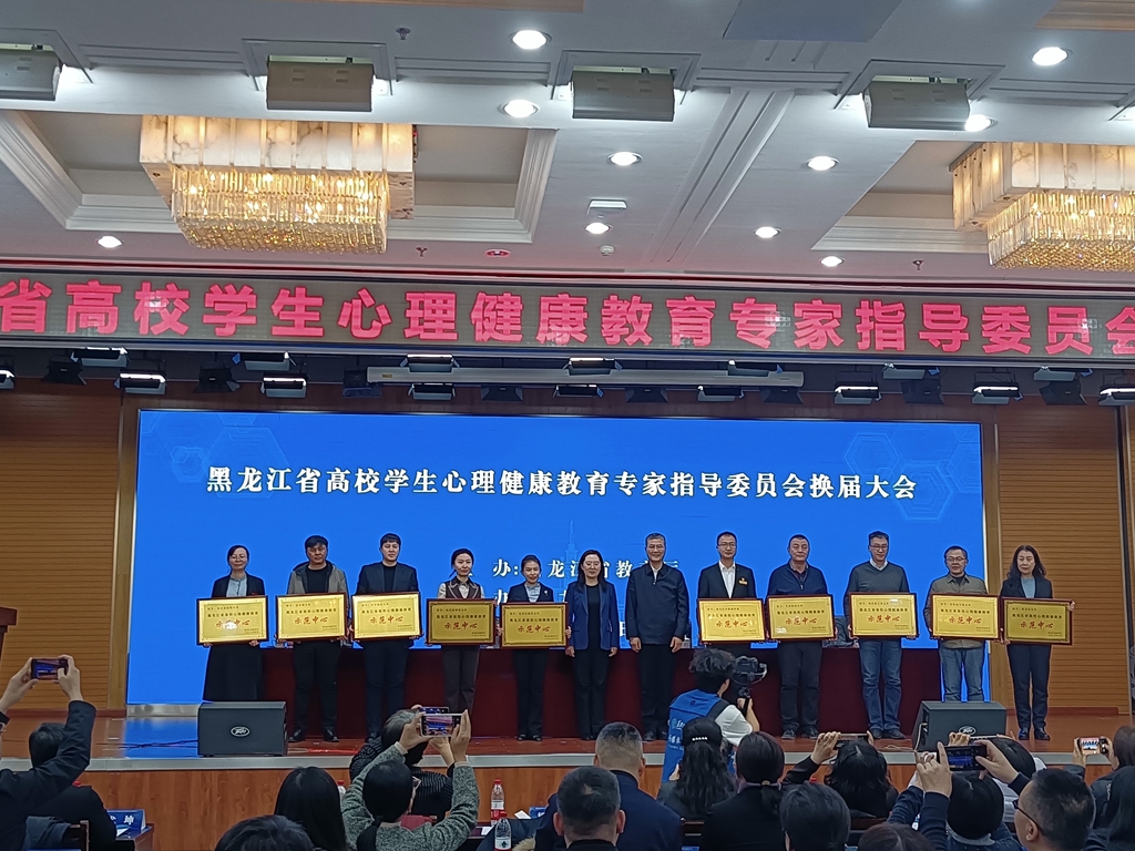 會上,我校黨委書記丁宏連任省高校學生心理健康教育專家指導委員會主任委員,雒文虎為我校黑龍江省首批“高校心理健康教育示范中心”授牌。