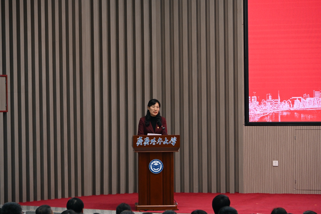 丁宏在致辭中表示,在全省率先發(fā)起成立“黨建引領(lǐng)大中小學(xué)思想政治教育一體化建設(shè)聯(lián)盟”,是貫徹落實(shí)黨的二十屆三中全會(huì)和全國(guó)、全省教育大會(huì)精神的具體舉措和實(shí)際行動(dòng),是我們校地之間合作推進(jìn)大中小學(xué)思想政治教育一體化建設(shè)雙向奔赴的共贏之舉和創(chuàng)新之舉。我校將著力在“強(qiáng)體系、抓統(tǒng)籌、循規(guī)律、促銜接”上下功夫,與齊齊哈爾市共同推動(dòng)大中小學(xué)思想政治教育一體化建設(shè)取得實(shí)績(jī)和實(shí)效。一是共同構(gòu)建“黨建引領(lǐng)”大思政育人新生態(tài);二是共同打造“1+N”模式一體化育人協(xié)同鏈;三是共同建設(shè)“校地聯(lián)動(dòng)”一體化育人合作群。她指出,推進(jìn)大中小學(xué)思想政治教育一體化建設(shè)是黨中央和習(xí)近平總書記賦予新時(shí)代學(xué)校的重要政治任務(wù),使命光榮、責(zé)任重大。面向未來,我校將與聯(lián)盟各成員單位攜手打造大中小學(xué)思想政治教育一體化建設(shè)的“區(qū)域樣本”,為構(gòu)建一體化建設(shè)的“龍江范本”貢獻(xiàn)力量,引領(lǐng)帶動(dòng)更多學(xué)校合力推動(dòng)“大中小學(xué)思想政治教育一體化建設(shè)”,為龍江高質(zhì)量發(fā)展、可持續(xù)振興作出新貢獻(xiàn)。