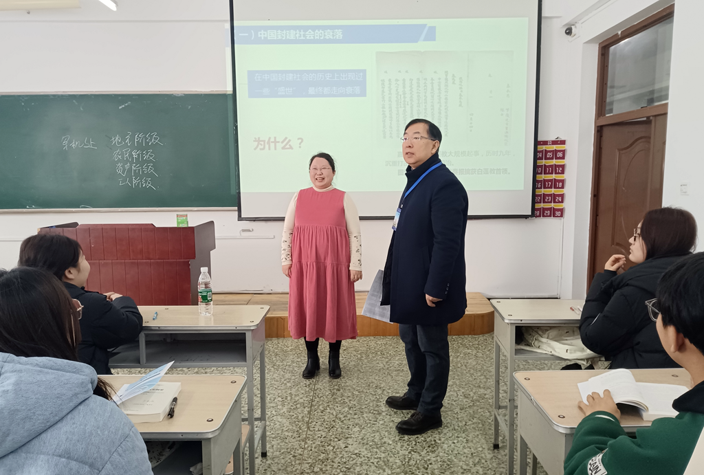 為深入了解新學(xué)期教師課堂教學(xué)準(zhǔn)備情況和學(xué)生學(xué)習(xí)狀態(tài),全面掌握學(xué)校本科教學(xué)情況,2月24日,校長(zhǎng)郝文斌在新學(xué)期第一天第一節(jié)課來到馬克思主義學(xué)院祖晨陽老師講授的“中國(guó)近現(xiàn)代史綱要”課堂聽課。