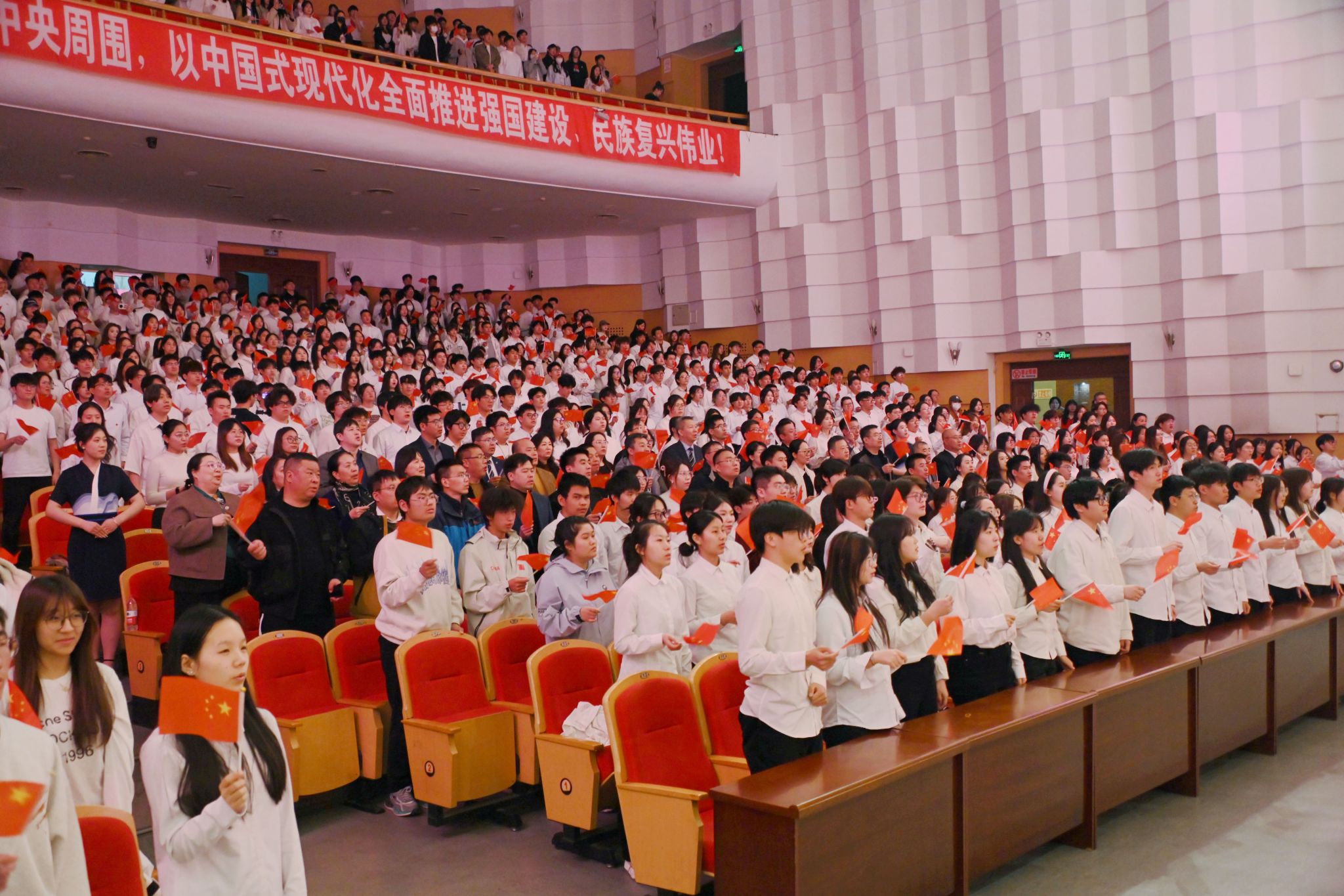 在“展望·未來(lái)——共赴時(shí)代新征程”單元中,校藝術(shù)團(tuán)的同學(xué)們以合唱《有我》《世界贈(zèng)予我的》點(diǎn)燃全場(chǎng),青年學(xué)子用歌聲詮釋“強(qiáng)國(guó)有我”的信念與擔(dān)當(dāng),傳遞著對(duì)祖國(guó)的熱愛(ài)與理想的追求。晚會(huì)在全場(chǎng)高唱《歌唱祖國(guó)》的激昂旋律中圓滿落幕,師生齊聲祝愿祖國(guó)繁榮昌盛、齊大明天更美好。