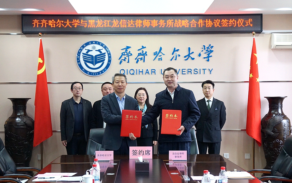 5月16日上午,齊齊哈爾大學(xué)與黑龍江龍信達(dá)律師事務(wù)所戰(zhàn)略合作簽約儀式在學(xué)校辦公樓504會(huì)議室舉行。省政協(xié)常委、律師協(xié)會(huì)副會(huì)長(zhǎng)、黑龍江龍信達(dá)律師事務(wù)所主任張鐵,副主任、學(xué)校優(yōu)秀校友謝桐平,合伙人任守一,校黨委書(shū)記丁宏,副校長(zhǎng)、黨委常委叢喜權(quán)等共同出席簽約儀式。