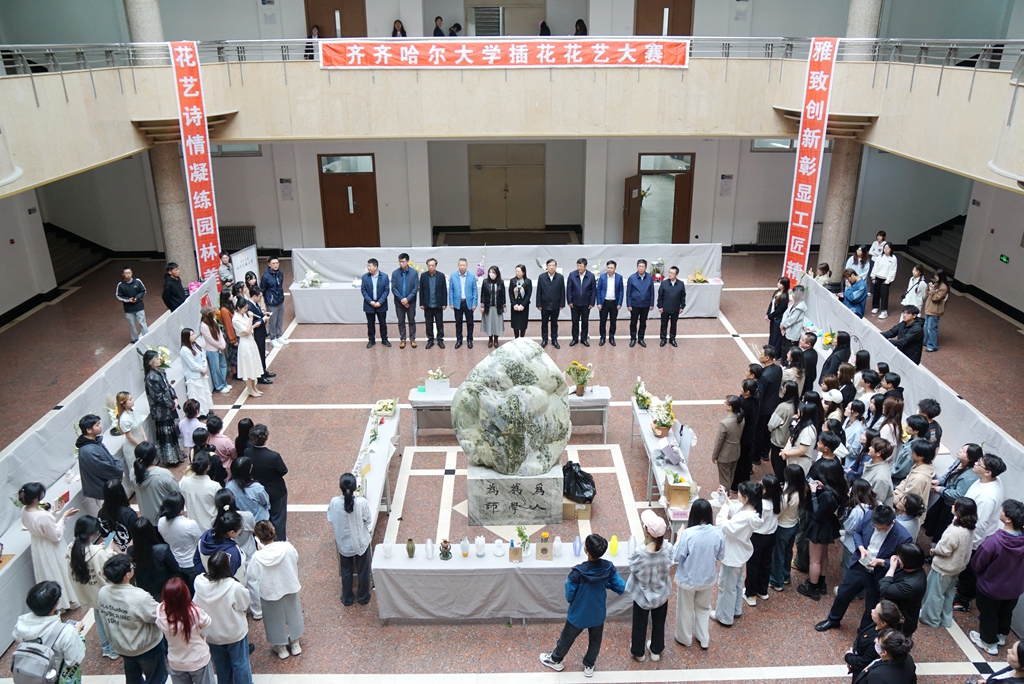5月21日下午,守正樓陽光大廳內花影搖曳、書香彌漫,我校“第十四屆插花花藝大賽”作品展在此啟幕。學校領導班子成員來到現場,與師生共同沉浸于這場“閱讀+藝術”的跨界美學盛宴。