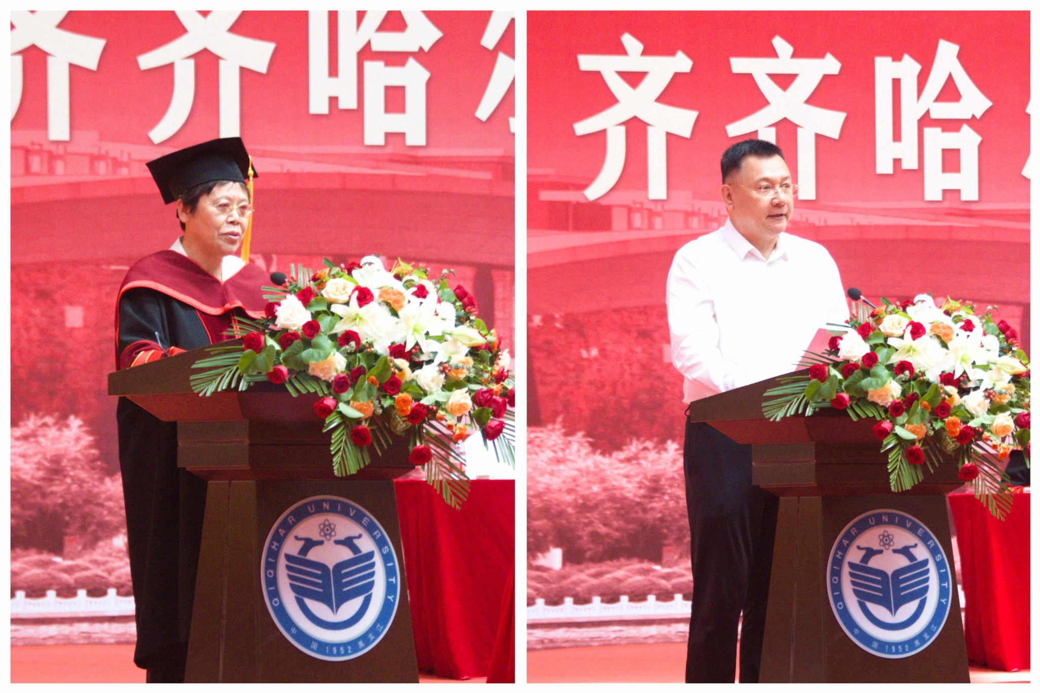 十三屆全國人大代表、齊齊哈爾大學-黑龍江省果蔬雜糧飲品研發(fā)中心主任郭成宇教授代表全體教師,為同學們加油鼓勁、送上祝福。優(yōu)秀校友代表、冷網(wǎng)供應(yīng)鏈(山東)有限公司董事長、山東省黑龍江商會監(jiān)事長、齊齊哈爾大學濟南校友會會長、我校95屆輕化系皮革工程專業(yè)畢業(yè)生劉雷與學弟學妹們分享了畢業(yè)30年來參加工作、個人創(chuàng)業(yè)的經(jīng)歷和感悟。