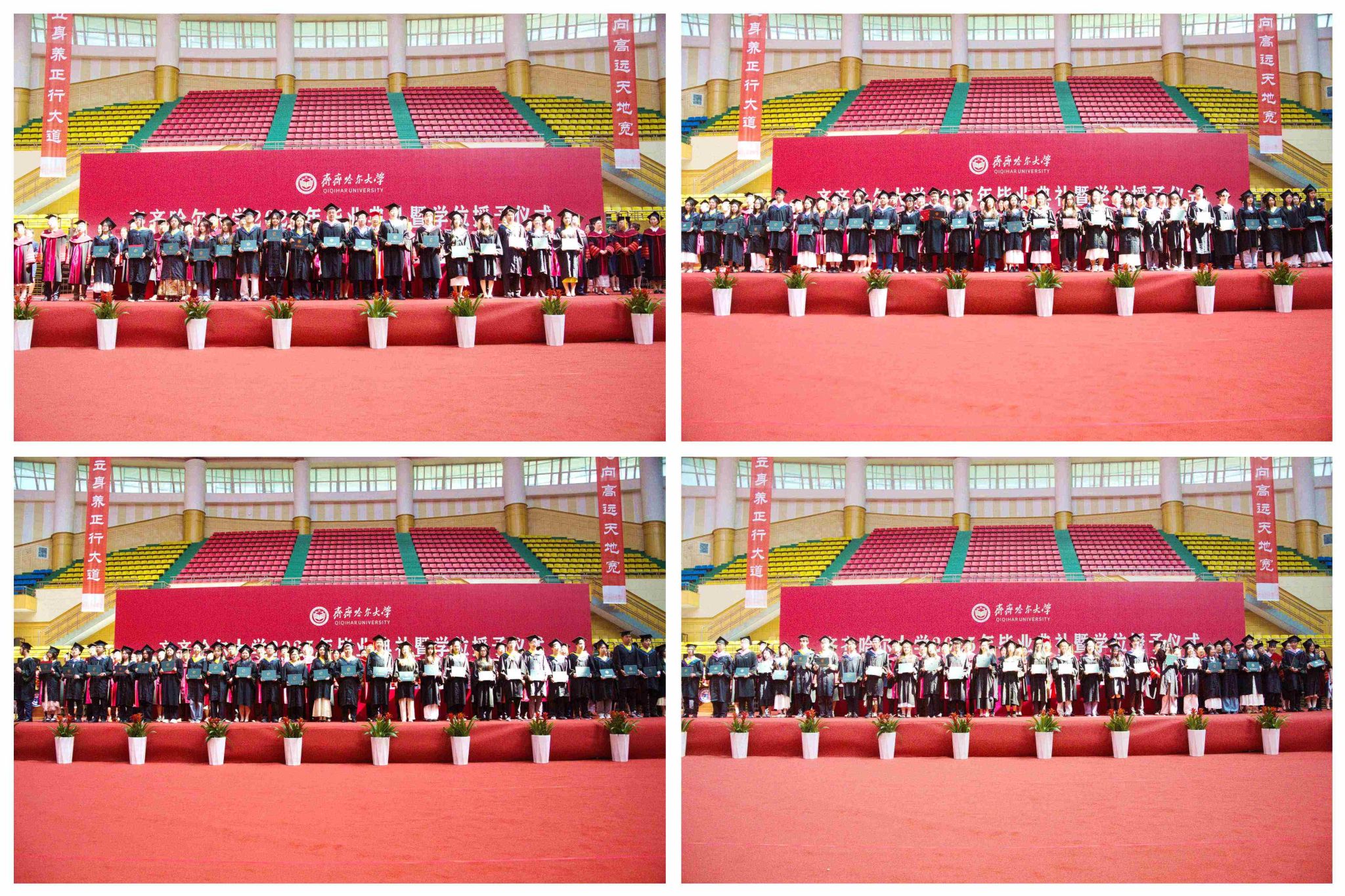 校領(lǐng)導和校學位評定委員會委員為畢業(yè)的本科生、研究生、留學生代表頒發(fā)畢業(yè)證書,為獲得學位的本科生、研究生、留學生代表撥蘇并頒發(fā)學位證書、授予學位。