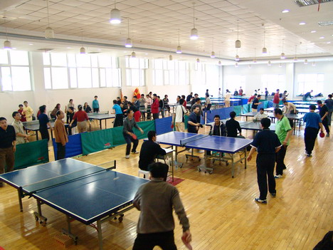 為進(jìn)一步開展全民健身活動(dòng),豐富校園文化生活,提高乒乓球、排球體育活動(dòng)水平,校工會(huì)于2006年4月3日開始至5月17日相繼舉辦了齊齊哈爾大學(xué)教職工乒乓球、排球比賽。 乒乓球比賽共有男、女35個(gè)代表隊(duì),100多名運(yùn)動(dòng)員參加,設(shè)有7個(gè)項(xiàng)目,經(jīng)過500多場(chǎng)次,1700多盤比賽,歷時(shí)10天,在4月13日下午圓滿結(jié)束。