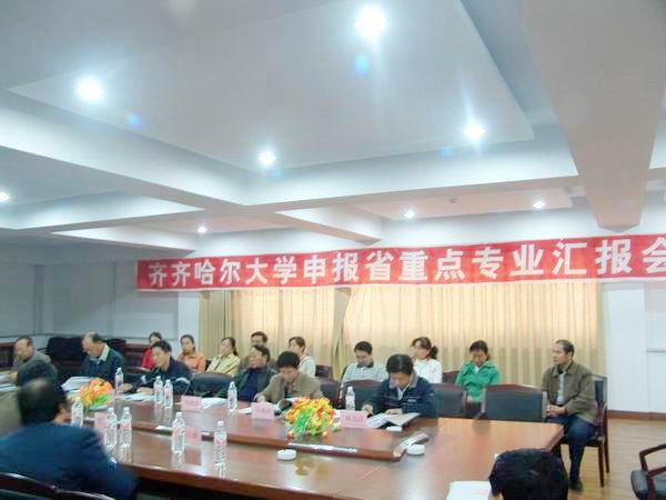 10月9日下午,由省教育廳高教處徐穎琪和哈爾濱醫(yī)科大學(xué)沃震中教授等6名專家組成的省教育廳重點(diǎn)專業(yè)建設(shè)專家調(diào)研組蒞臨我校指導(dǎo)工作,校長唱江華、副校長姜守訓(xùn)、鄭喜群、鄧啟剛和有關(guān)部門負(fù)責(zé)人李英杰、高廣君、王云鵬、陳國良等出席匯報會,我校申報省重點(diǎn)專業(yè)建設(shè)的相關(guān)學(xué)院負(fù)責(zé)人、專業(yè)帶頭人等參加了匯報會。