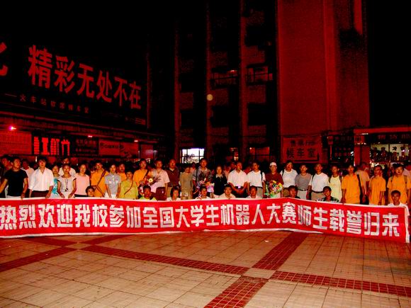 8月25日19:00時許,校黨委副書記王鳳琴、副校長曲偉建、宣傳部副部長、新聞中心主任孟憲國、團委副書記李秀梅及齊懷琴等部分指導教師、校學生會代表等到火車站迎接我校赴京參加“第四屆CCTV全國大學生機器人電視大賽”載譽歸來的參賽師生。在火車站,副校長曲偉建、計算機控制與工程學院院長戴學豐、校團委書記黃偉中、計算機與控制工程學院李春林教授等接受了齊齊哈爾電視臺記者的專訪。
