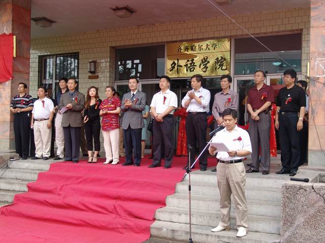 6月15日下午,環(huán)球雅思國際英語培訓(xùn)中心在我校外語學(xué)院舉行揭牌儀式。我校校長唱江華、副校長鄭喜群和副市長馬立群、齊市高專黨委書記楊民及環(huán)球雅思北京總部張永琪校長等出席成立大會暨揭牌儀式。副校長鄭喜群主持成立大會暨揭牌儀式。