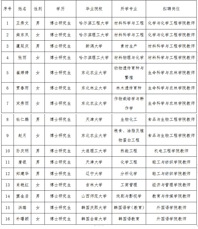 按照《黑龍江省事業(yè)單位公開招聘工作人員實(shí)施細(xì)則》的規(guī)定,根據(jù)《齊齊哈爾大學(xué)2019年上半年公開招聘人員公告》明確的原則、程序和方法,現(xiàn)將擬聘用人員予以公示。如對(duì)公示人員有異議,可在公示期內(nèi)反映,反映情況和問題必須實(shí)事求是,應(yīng)簽署或告知真實(shí)姓名、工作單位和聯(lián)系方式;對(duì)線索不清的匿名信和匿名電話,公示期間不予受理。