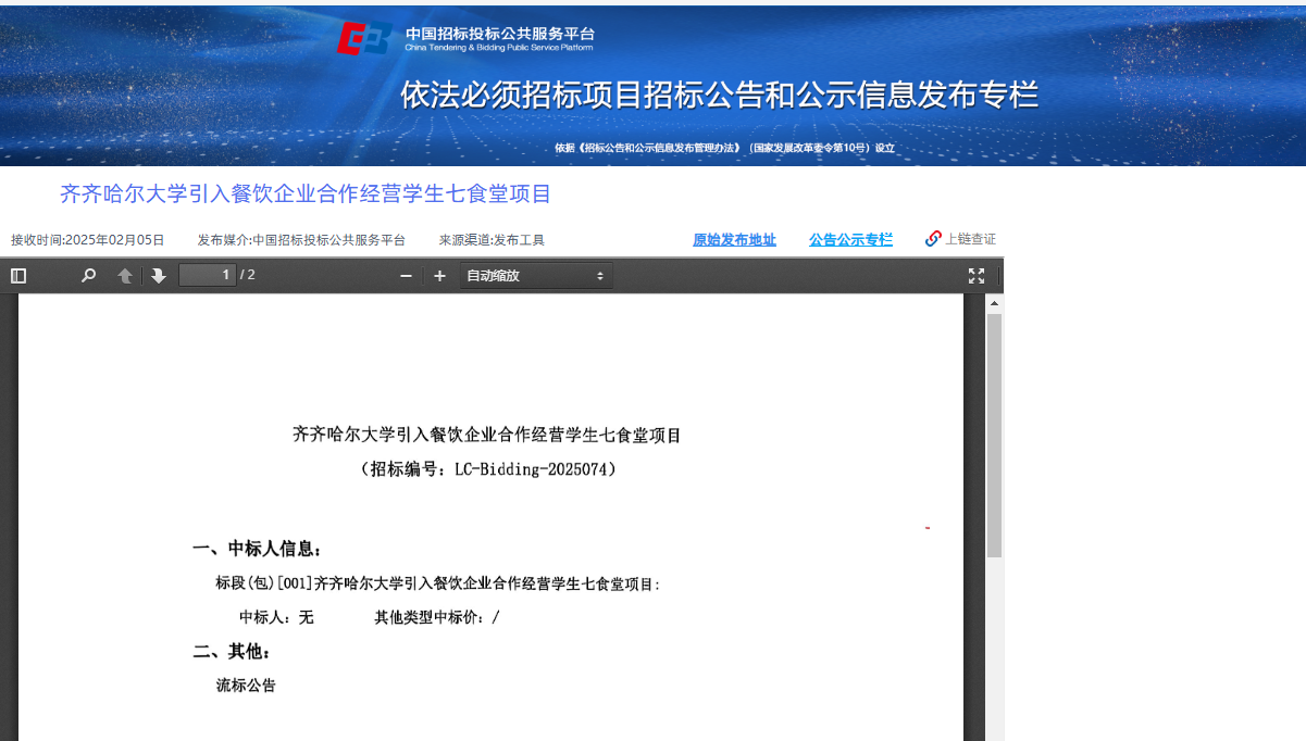 上一條:齊齊哈爾大學(xué)引入餐飲企業(yè)合作經(jīng)營學(xué)生七食堂項目(二次)(轉(zhuǎn)自中國招標(biāo)投標(biāo)公共服務(wù)平臺)