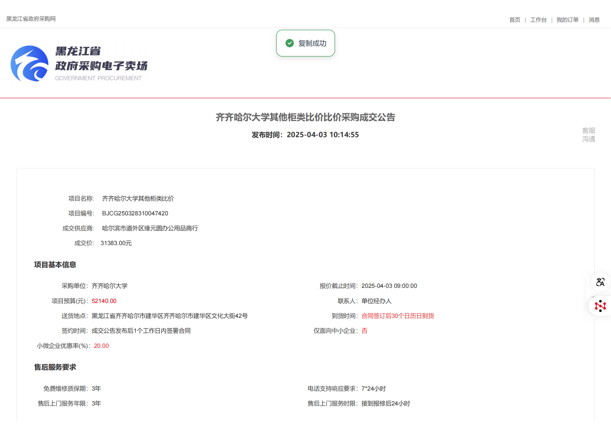 下一條:易燃易爆化學品存儲柜22加侖黃色成交公告(轉自黑龍江省政府采購網)