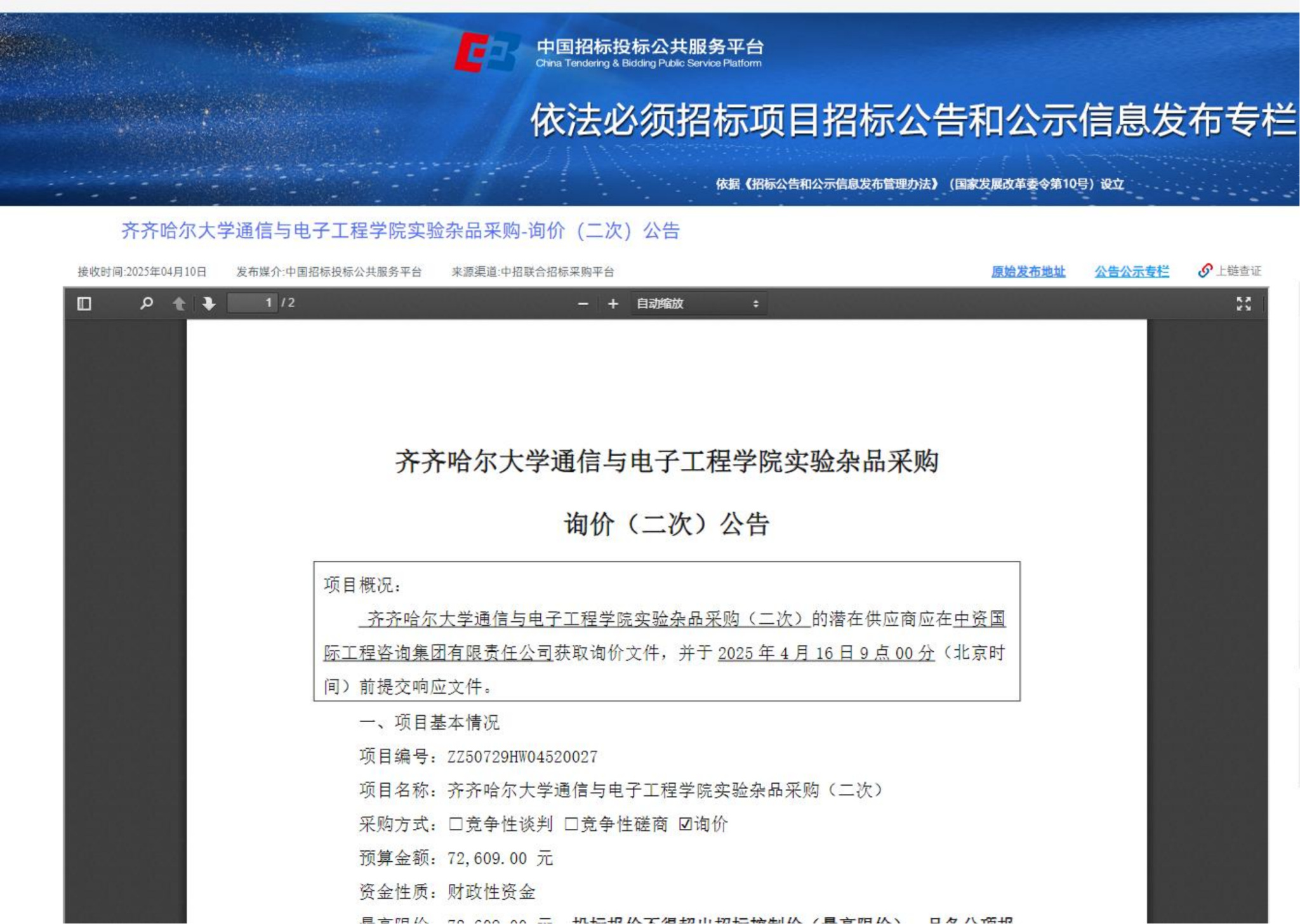上一條:齊齊哈爾大學游泳館維修加固項目竣工結算審核服務競爭性磋商公告(轉自中國招標投標公共服務平臺)