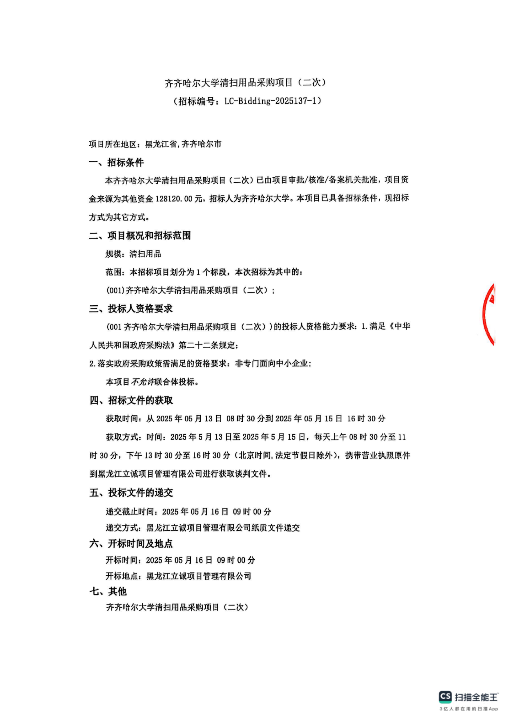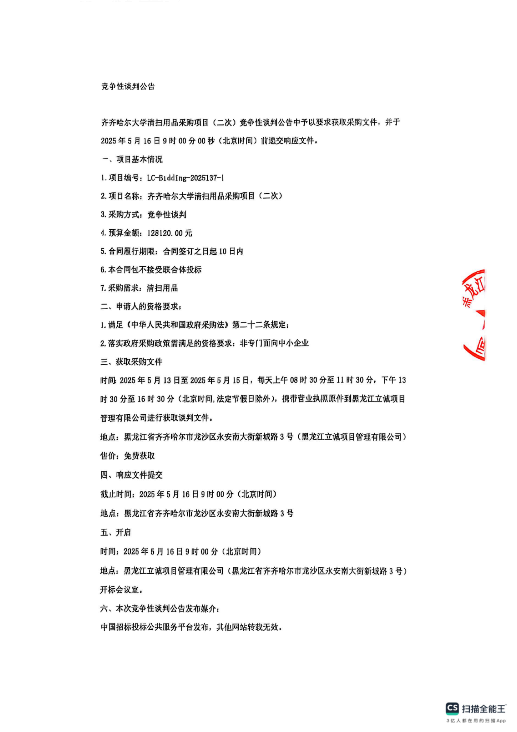 下一條:齊齊哈爾大學清掃用品采購項目廢標公告(轉自中國招標投標公共服務平臺)