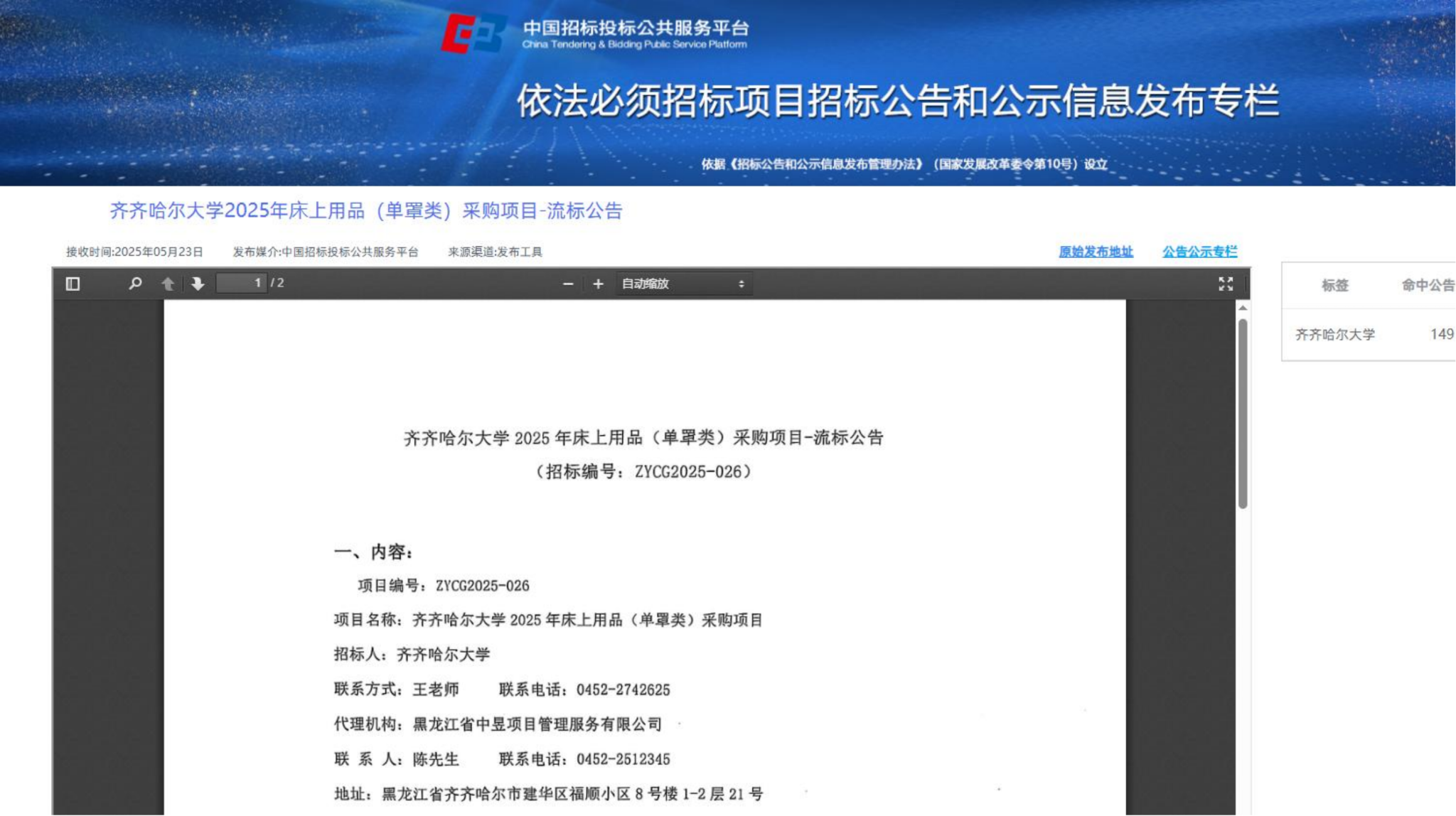 上一條:齊齊哈爾大學2025年床上用品(內芯類)采購項目-流標公告(轉自中國招標投標公共服務平臺)