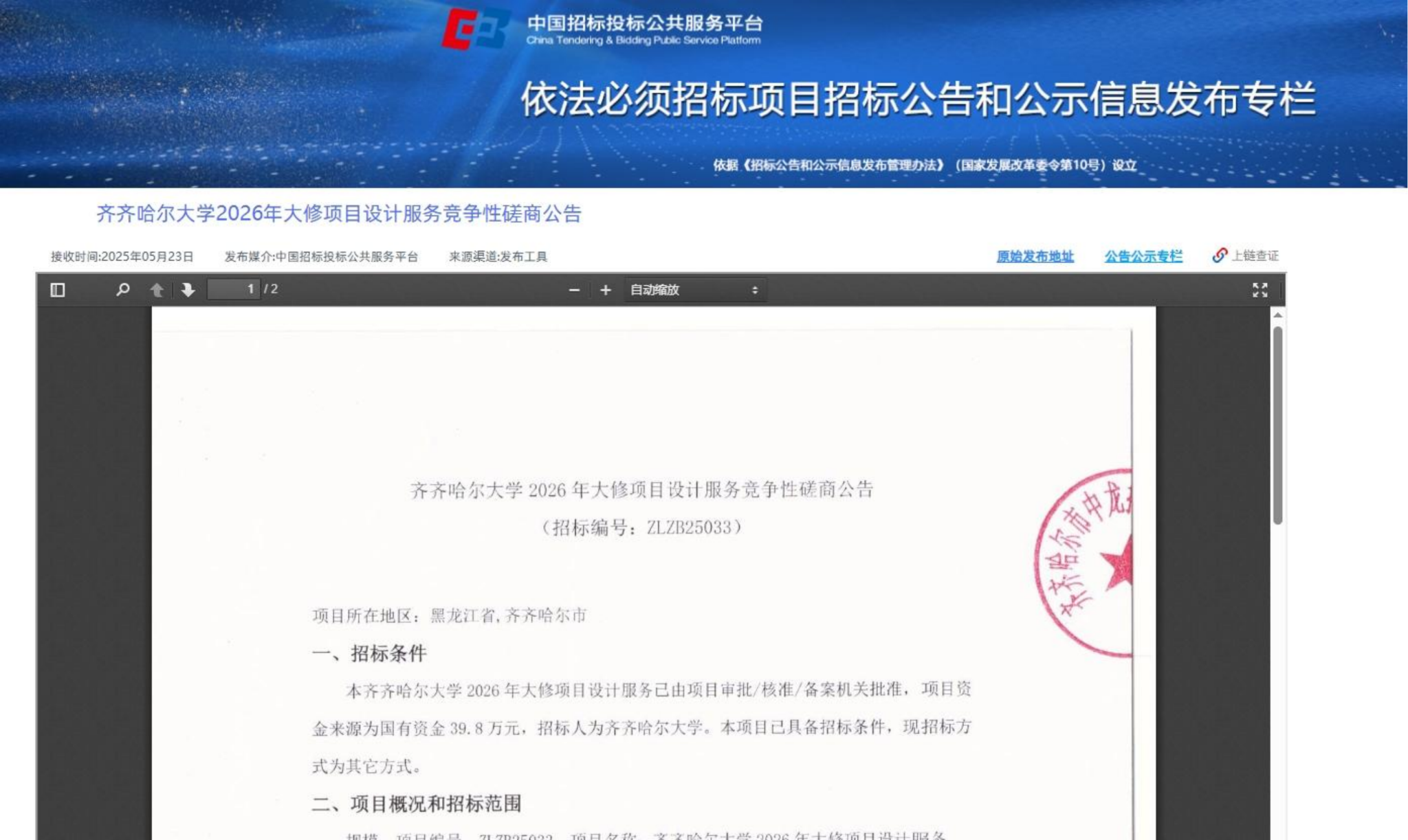 上一條:齊齊哈爾大學清冰雪服務-競爭性談判公告(轉自中國招標投標公共服務平臺)