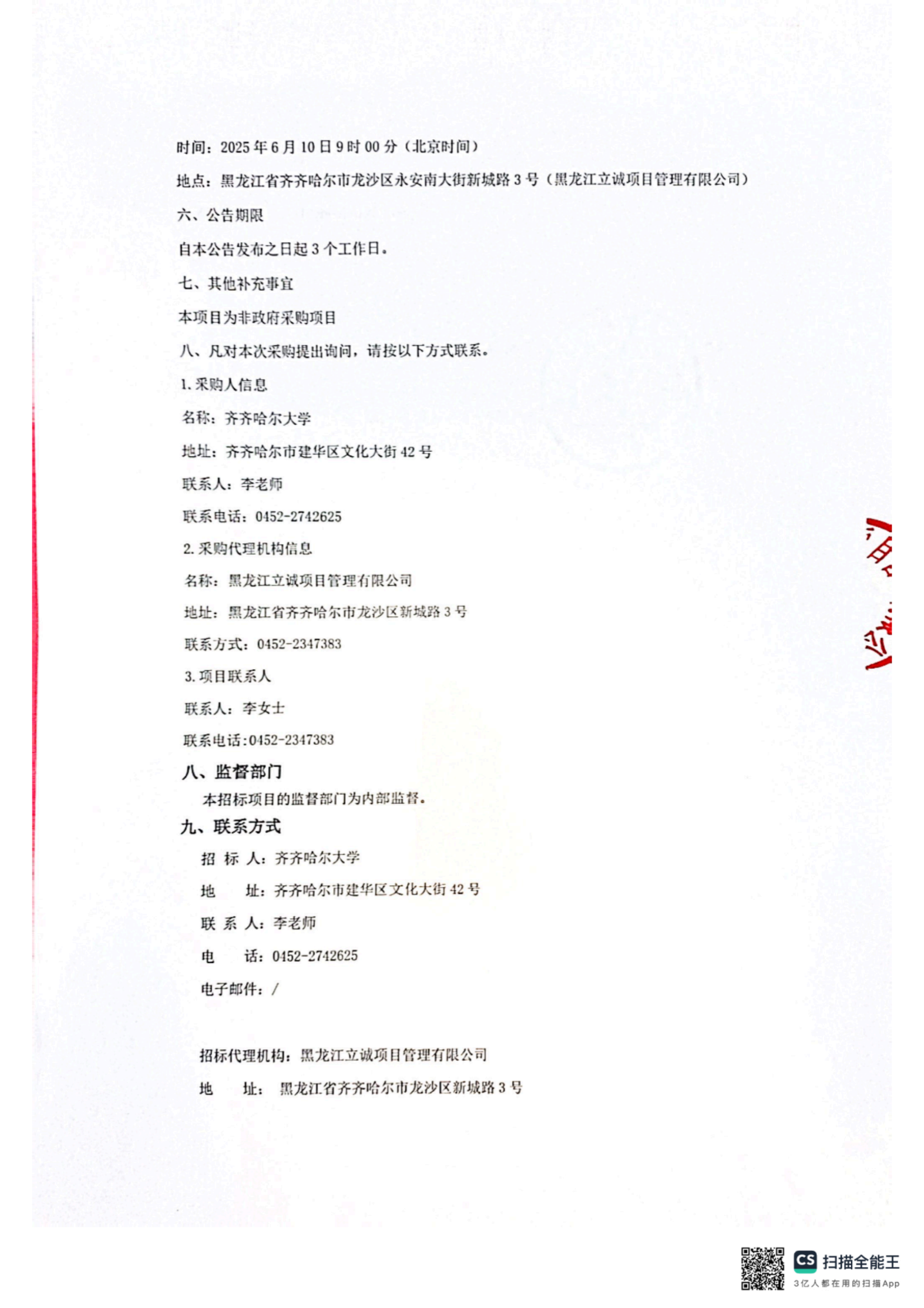上一條:齊齊哈爾大學消控室值守服務項目中標結果公示(轉自中國招標投標公共服務平臺)