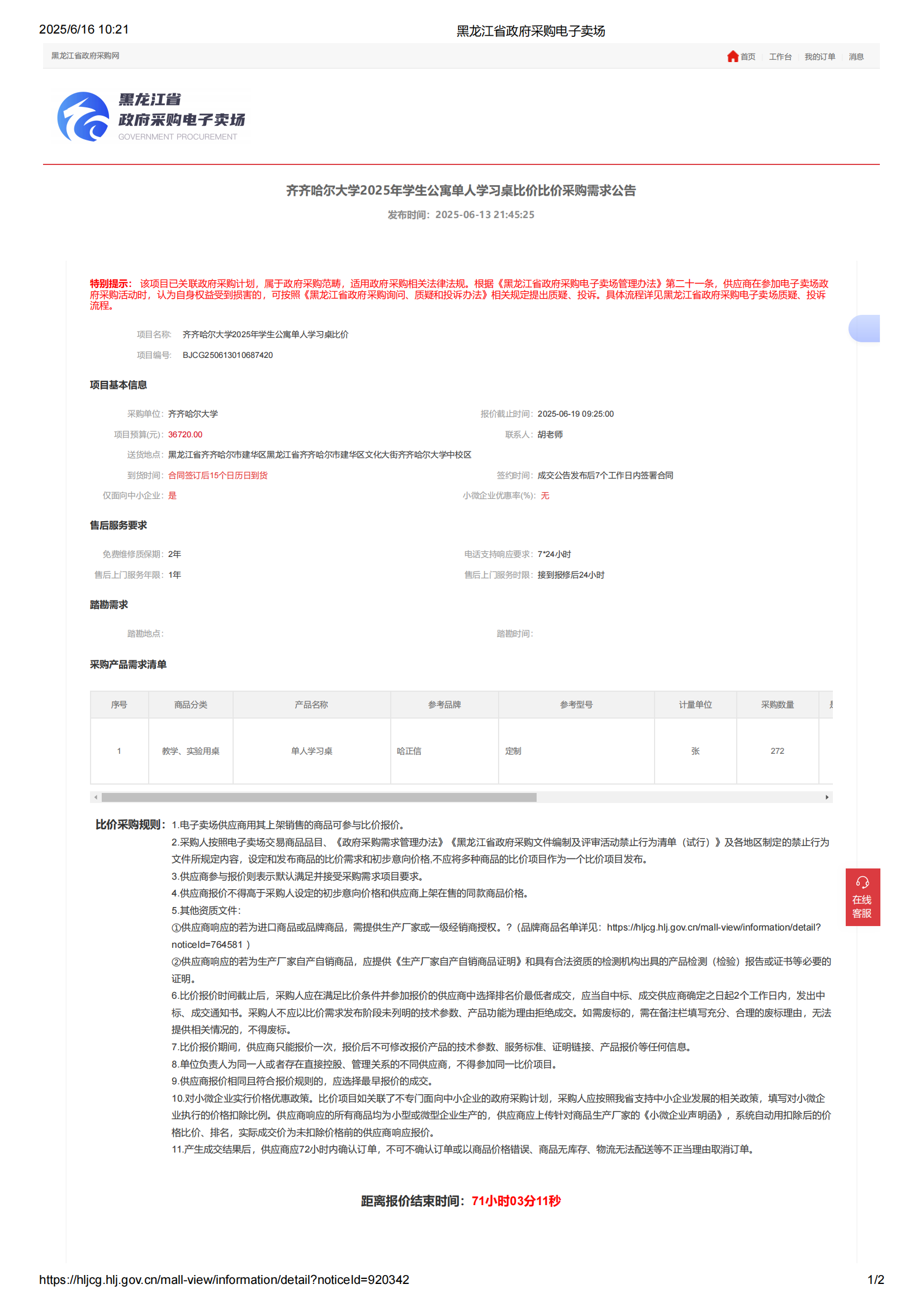 上一條:齊齊哈爾大學2025年學生公寓上下鋪公寓床(普通)比價比價采購需求公告(轉自黑龍江省政府采購網)