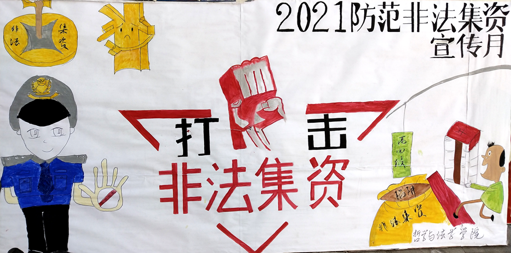 6月11日至22日,學校開展2021年度防范非法集資宣傳月教育活動。宣傳部、學生工作部(學生處)等部門采取集中宣傳與分層次宣傳兩種形式,加大《防范和處置非法集資條例》普法和防范非法集資的宣傳教育力度,加強風險警示,引導理性維權,營造了濃厚的和諧校園氛圍。