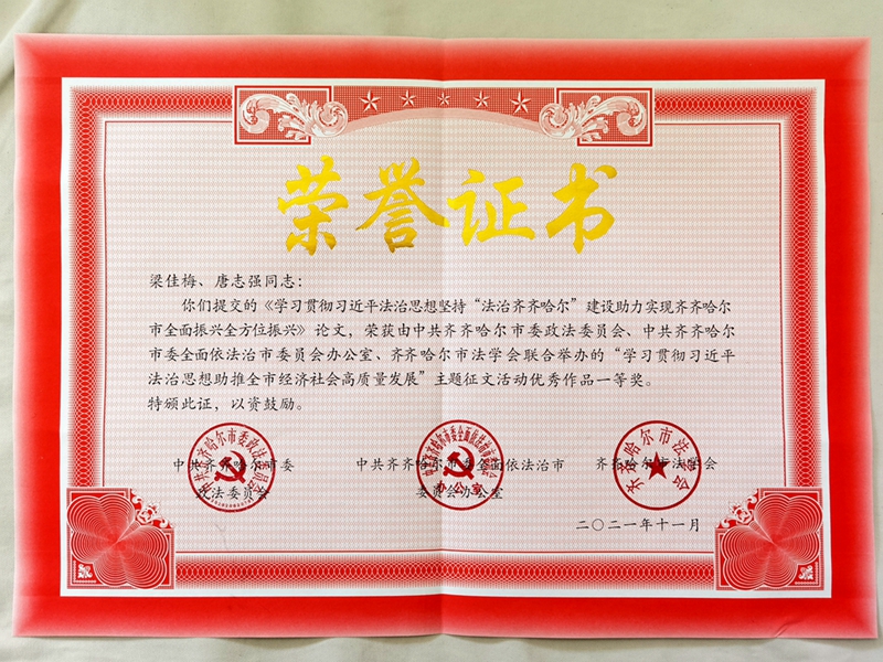 學思踐悟,細照篤行。學校黨委高度重視學習宣傳貫徹習近平法治思想。習近平法治思想是馬克思主義法治理論同中國實際相結合的最新成果,是21世紀馬克思主義法治思想,是習近平新時代中國特色社會主義思想的重要組成部分,是全面依法治國的根本遵循和行動指南,深刻回答了為什么要全面依法治國、怎樣全面依法治國這個重大時代課題。校、院兩級黨委將習近平法治思想的學習納入黨委理論學習中心組學習計劃、納入教職工政治理論學習計劃,組織廣大師生員工充分利用“學習強國”“黑龍江教育干部網(wǎng)絡學院”等網(wǎng)絡平臺等多種形式,學深悟透習近平法治思想,深刻領會其重大意義、精神實質、實踐要求,學懂弄通《法治中國建設規(guī)劃(2020—2025年)》把習近平法治思想融入教學體系。自2021年9月開始,將“習近平法治思想概論”納入了2021級法學專業(yè)基礎必修課,做好進教材、進課堂、進頭腦工作。加強習近平法治思想的理論研究和闡釋,發(fā)表《論習近平法治思想的實踐論核心內涵》等論文;在齊齊哈爾市“學習貫徹習近平法治思想”主題征文活動中,我校師生榮獲一等獎、三等獎各1篇。推動習近平法治思想入腦入心、走深走實,不斷增強法治意識,提高法治能力水平。