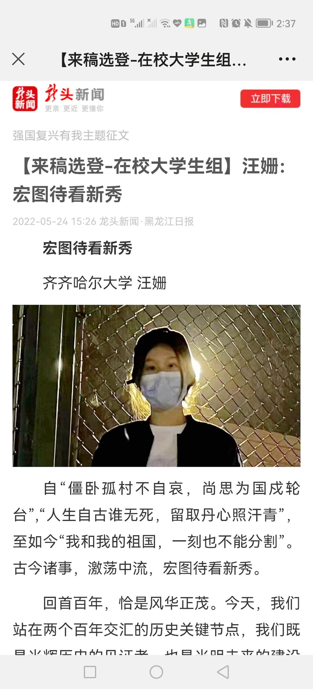 2.樊妍 《強國復興有我,青春筑夢芳華》 鶴崗市市委宣傳部