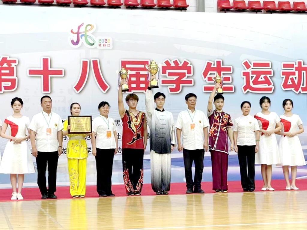 8月19日-21日,由黑龍江省教育廳與黑龍江省體育局聯合主辦的黑龍江省第十八屆學生運動會大學生武術項目的比賽在牡丹江師范學院舉行。我校武術隊首次參賽,并以一金三銀的好成績榮獲乙組(體育院校專業組)團體總分第二名。