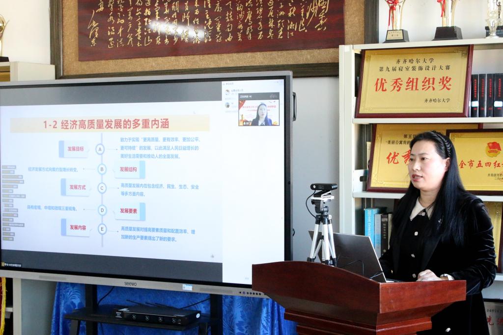 此次論壇以“踔厲奮發百年大黨 勇毅前行再譜新篇”為主題,齊齊哈爾市市委宣傳部副部長陳琳,齊齊哈爾市社科聯黨組書記、主席李維杰,黨組成員、副主席何莉,齊齊哈爾市教育教學研究院院長王景元及學校相關部門及學院領導出席論壇。論壇由經濟與管理學院黨委書記王鴻主持。